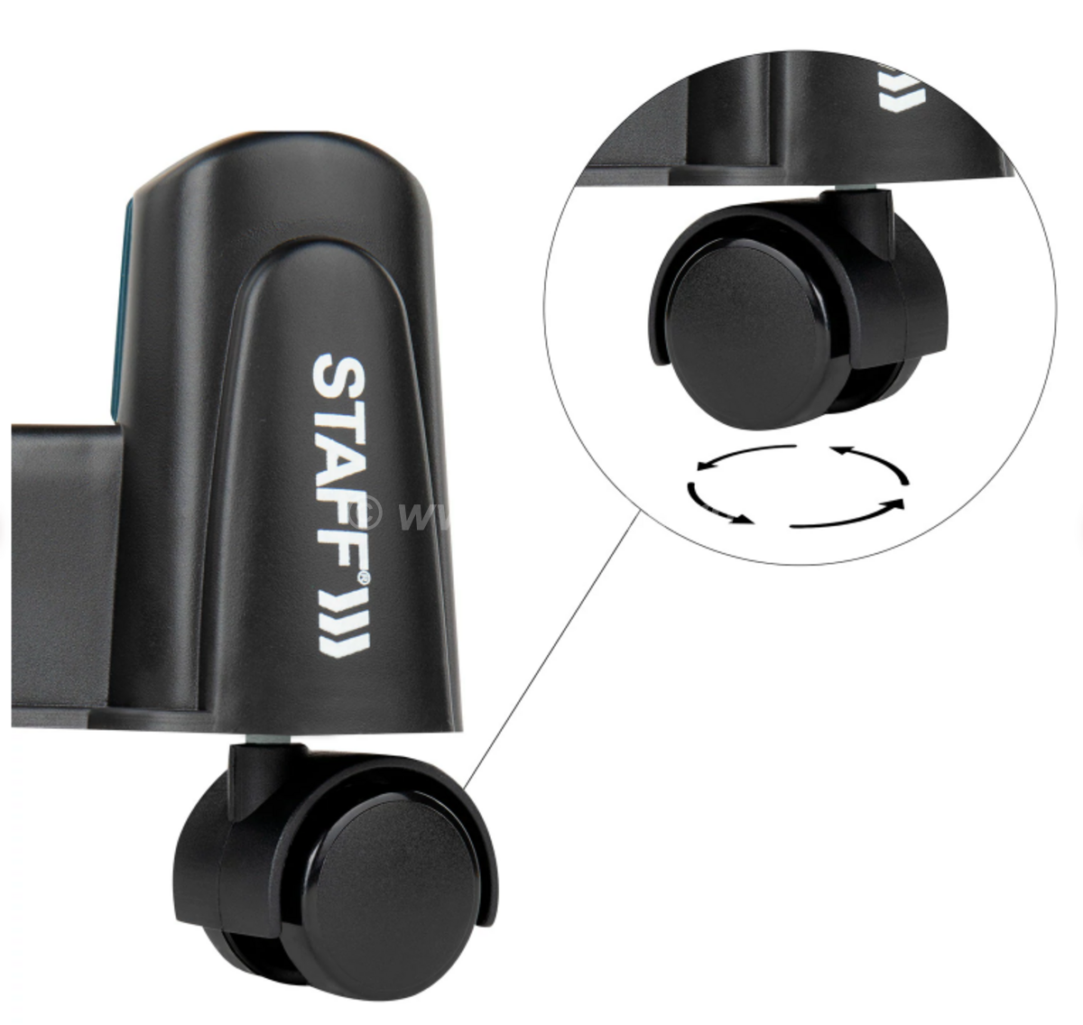 Передвижная подставка для системного блока STAFF. Мобильность подставки позволяет передвигать системный блок компьютера без усилий, не повреждая напольное покрытие. Благодаря этому появляется возможность производить более тщательную уборку рабочего места.
