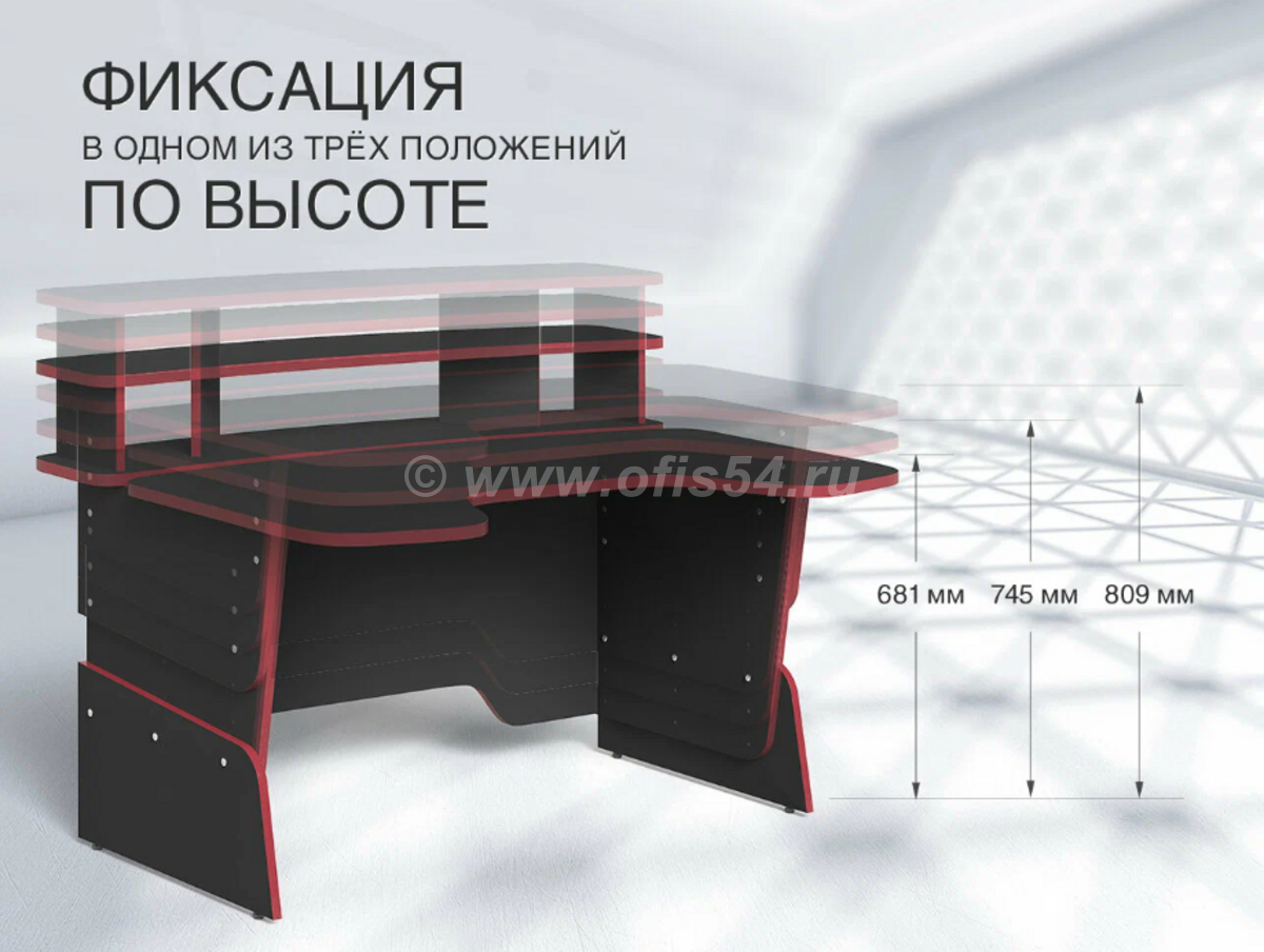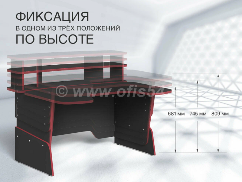 Регулировка стола по высоте в трех положениях: максимальное 814 мм, среднее 750 мм, минимальное 686 мм.