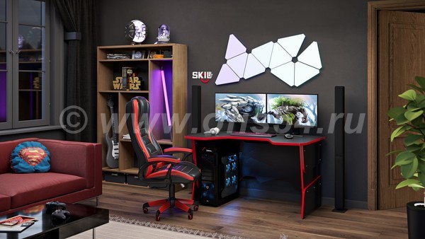 SKILLL STG 1385 K - серьезный компьютерный стол. Солидный, мощный. Надежный, как скала, и такой же крутой. За этим столом можно делать все – и работать, и играть, и отдыхать. Он все умеет, и для всего создаст наилучшие, самые комфортные условия.