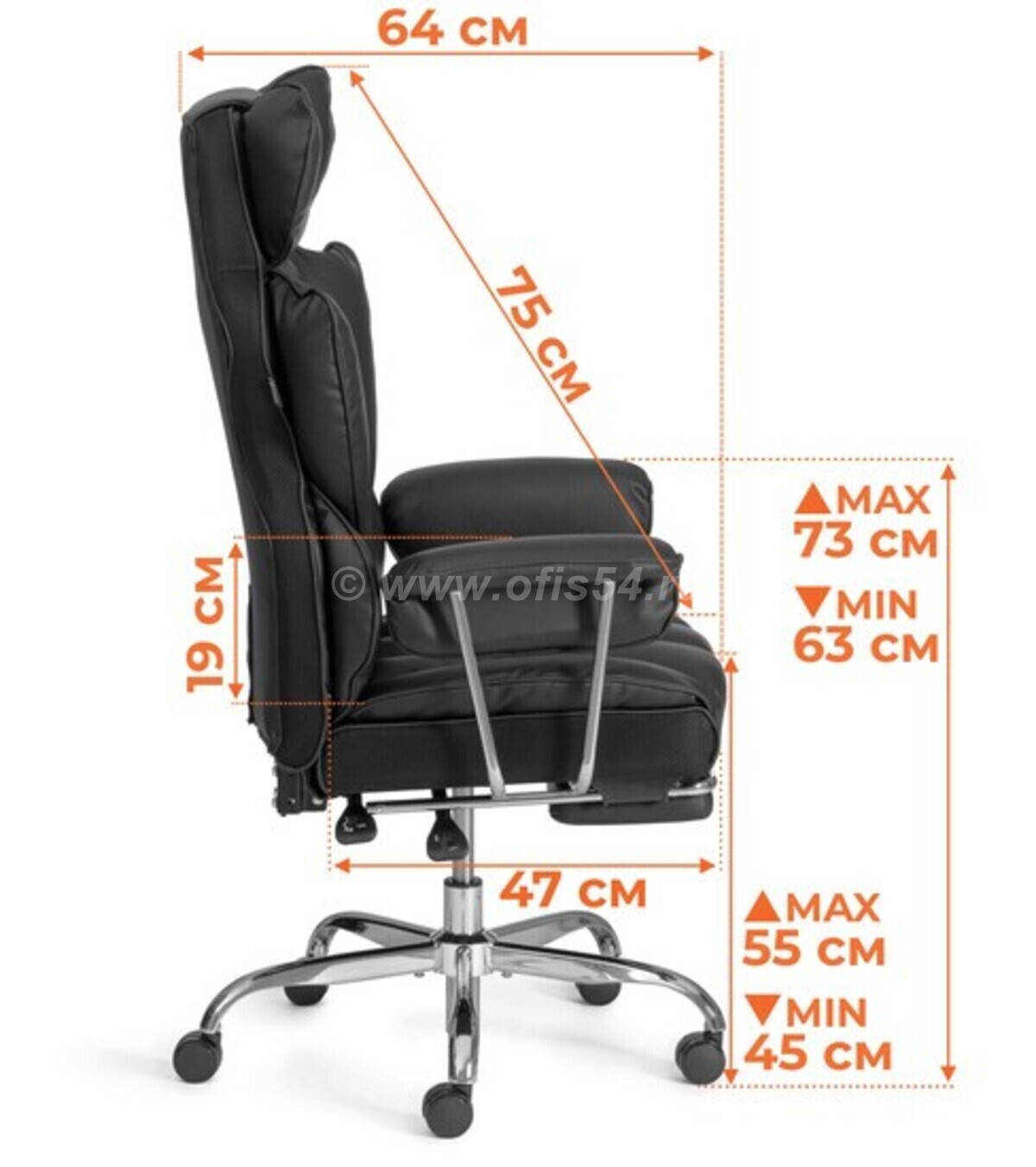 - Габаритная глубина кресла (от крайней задней точки спинки до передней точки сиденья): 64