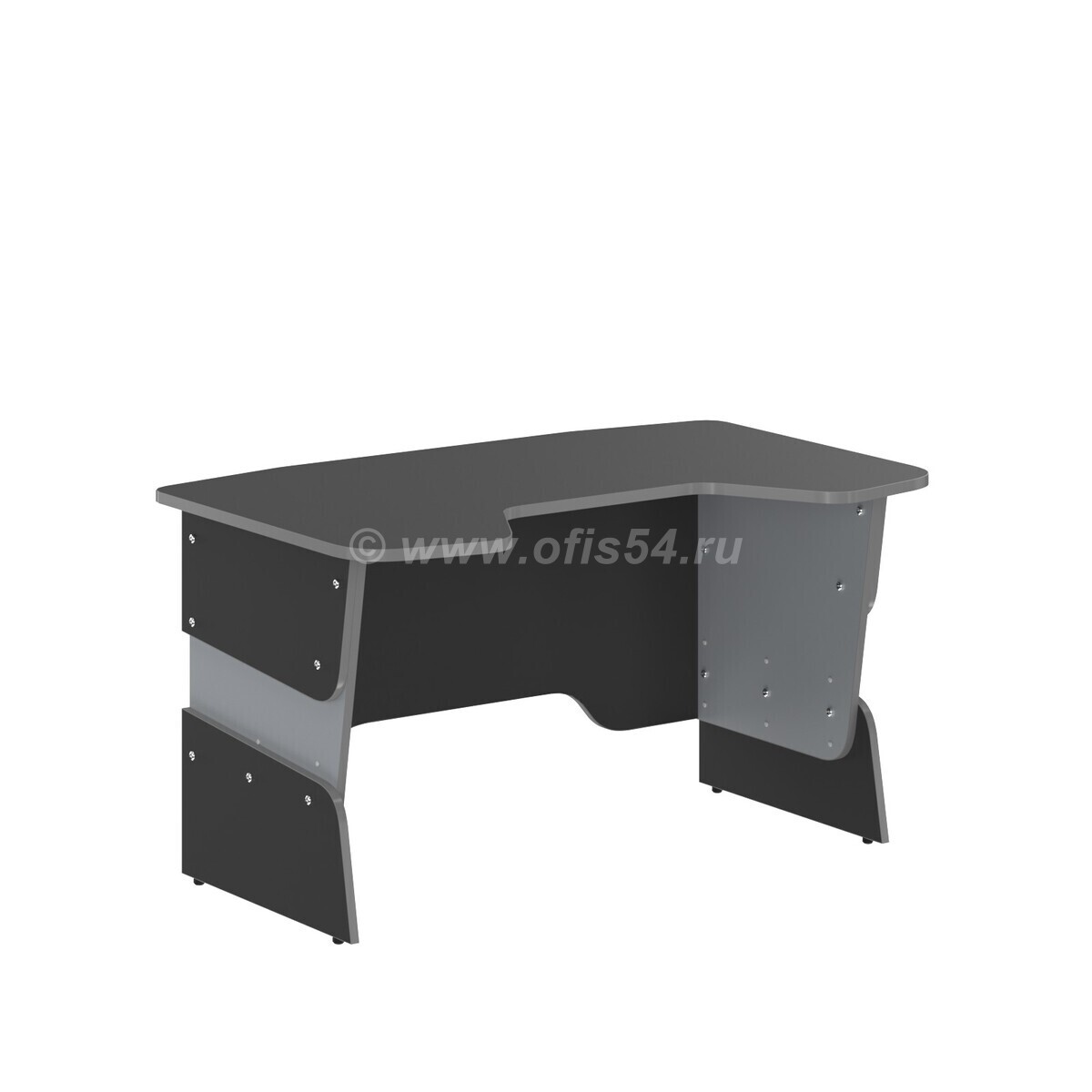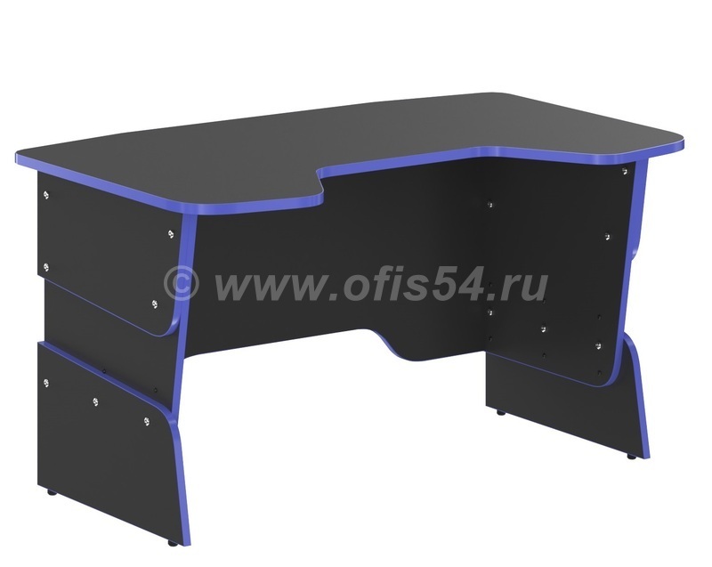 Столешница эргономичной формы (с вырезом для удобной посадки), размеры - 1360x850 мм, выполнена из безопасной ЛДСП класс Е1, цвет - антрацит, толщина - 22 мм. Ударопрочная кромка ПВХ 2 мм, цвет - красный.Эргономичная фронтальная панель с вырезами для проводов.