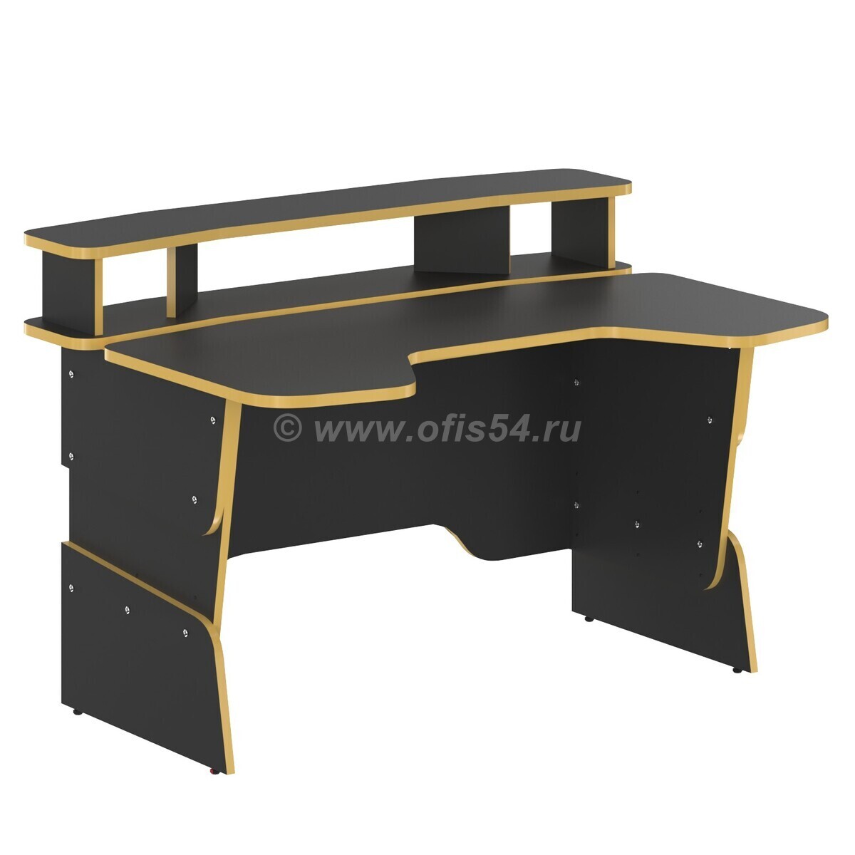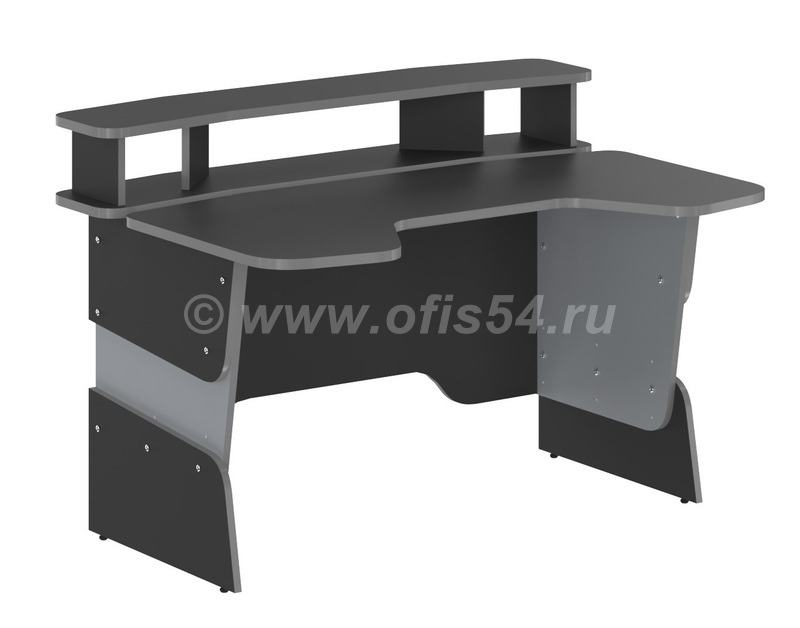 Составная столешница эргономичной формы (с вырезом для удобной посадки), размеры - 1360x1000 мм, выполнена из безопасной ЛДСП класс Е1, цвет - антрацит, толщина - 22 мм. Ударопрочная кромка ПВХ 2 мм, цвет на выбор. Эргономичная фронтальная панель с вырезами для проводов.