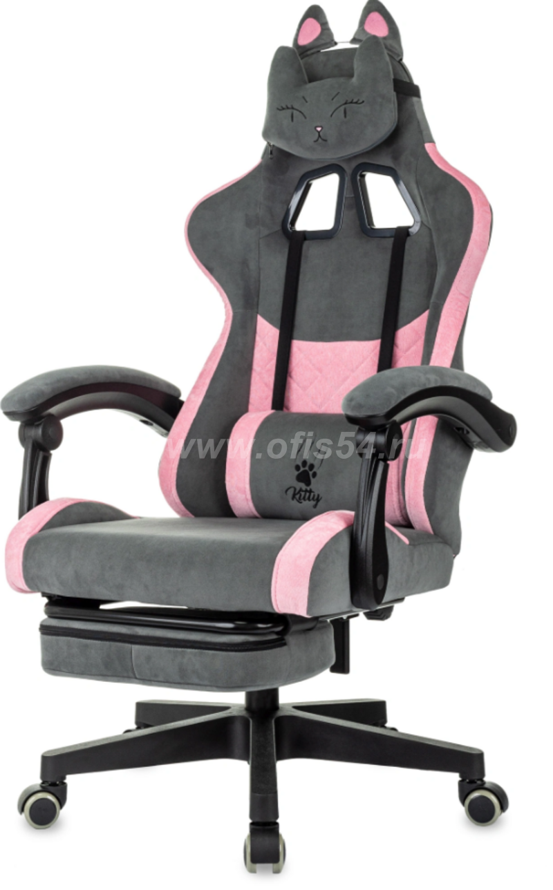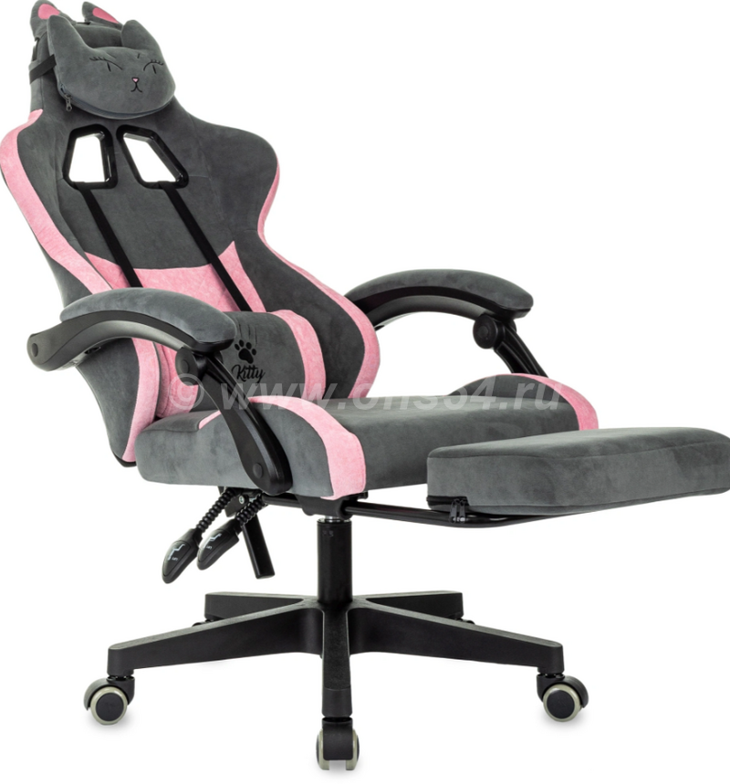 Кресло игровое Knight Kitty/F Fabric серый/розовый крестовина пластик, подставка для ног
