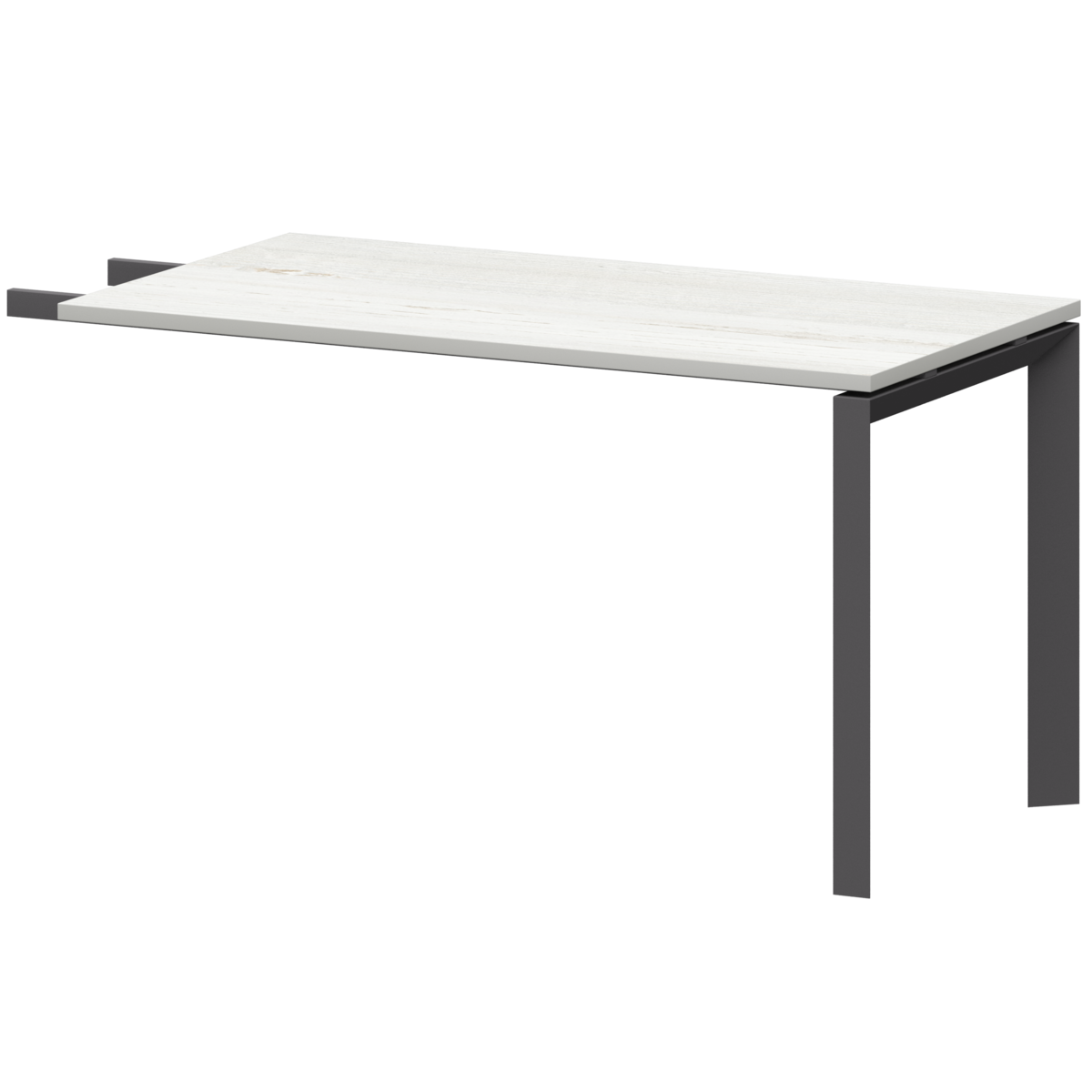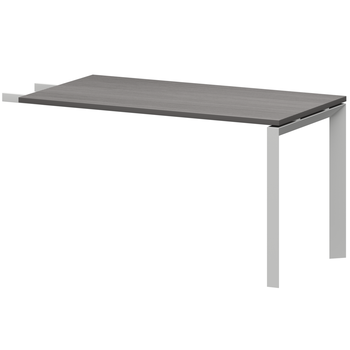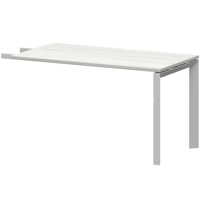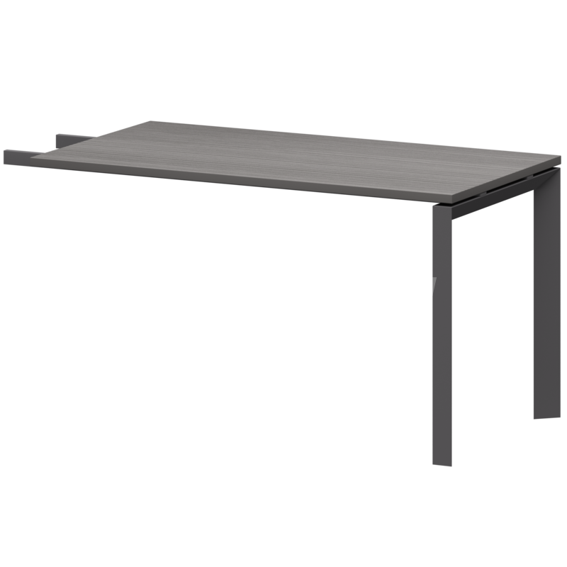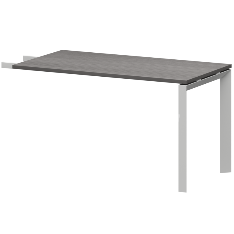 Столешницы соеденены с опорами проставками цвета матовый хром.