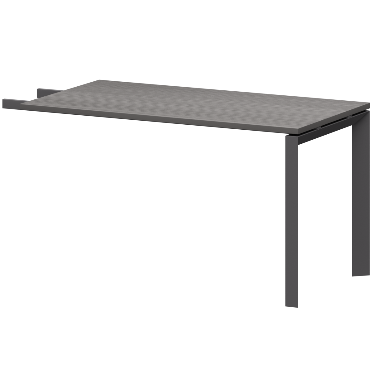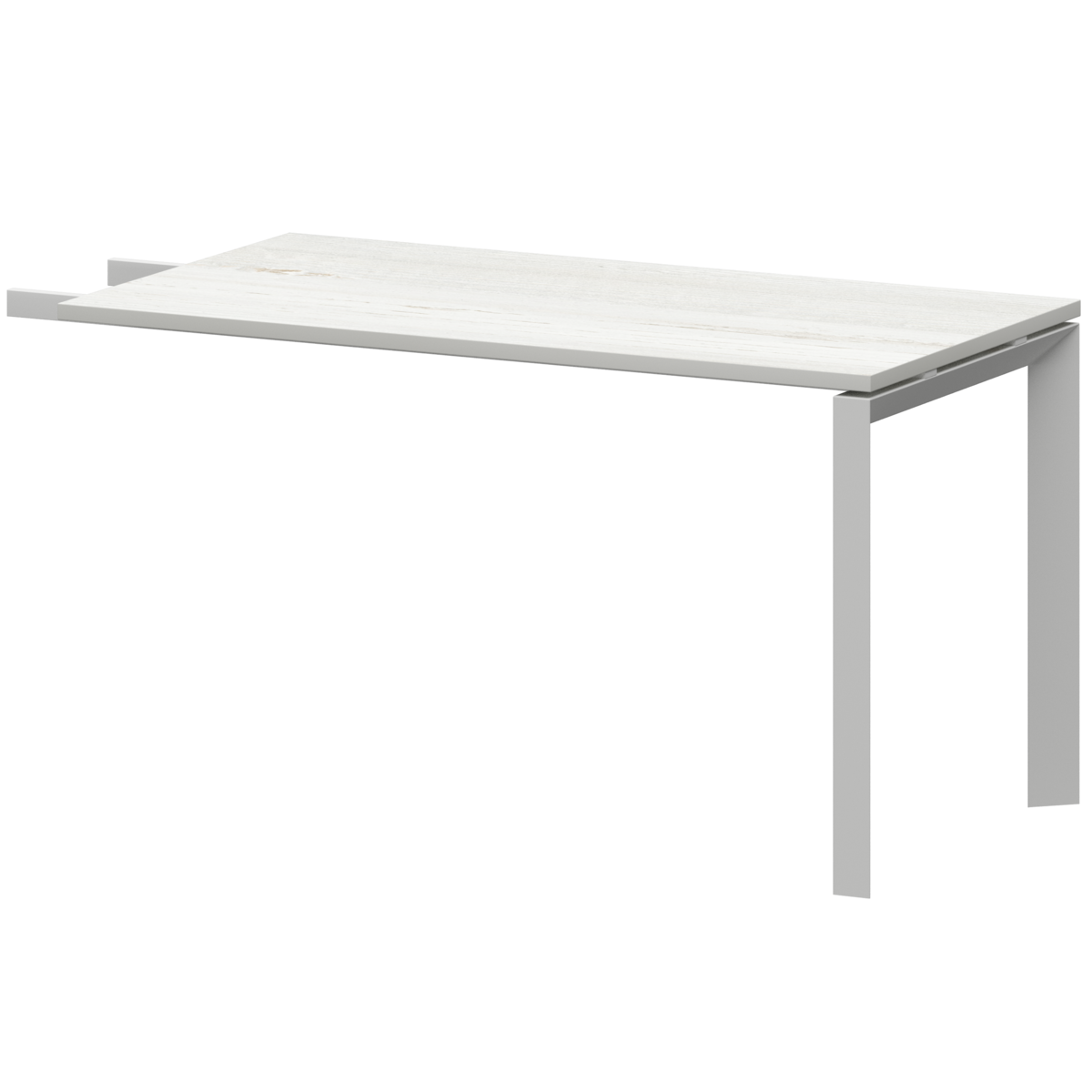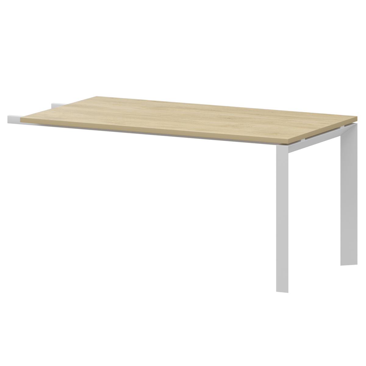 Столешницы соеденены с опорами проставками цвета матовый хром.