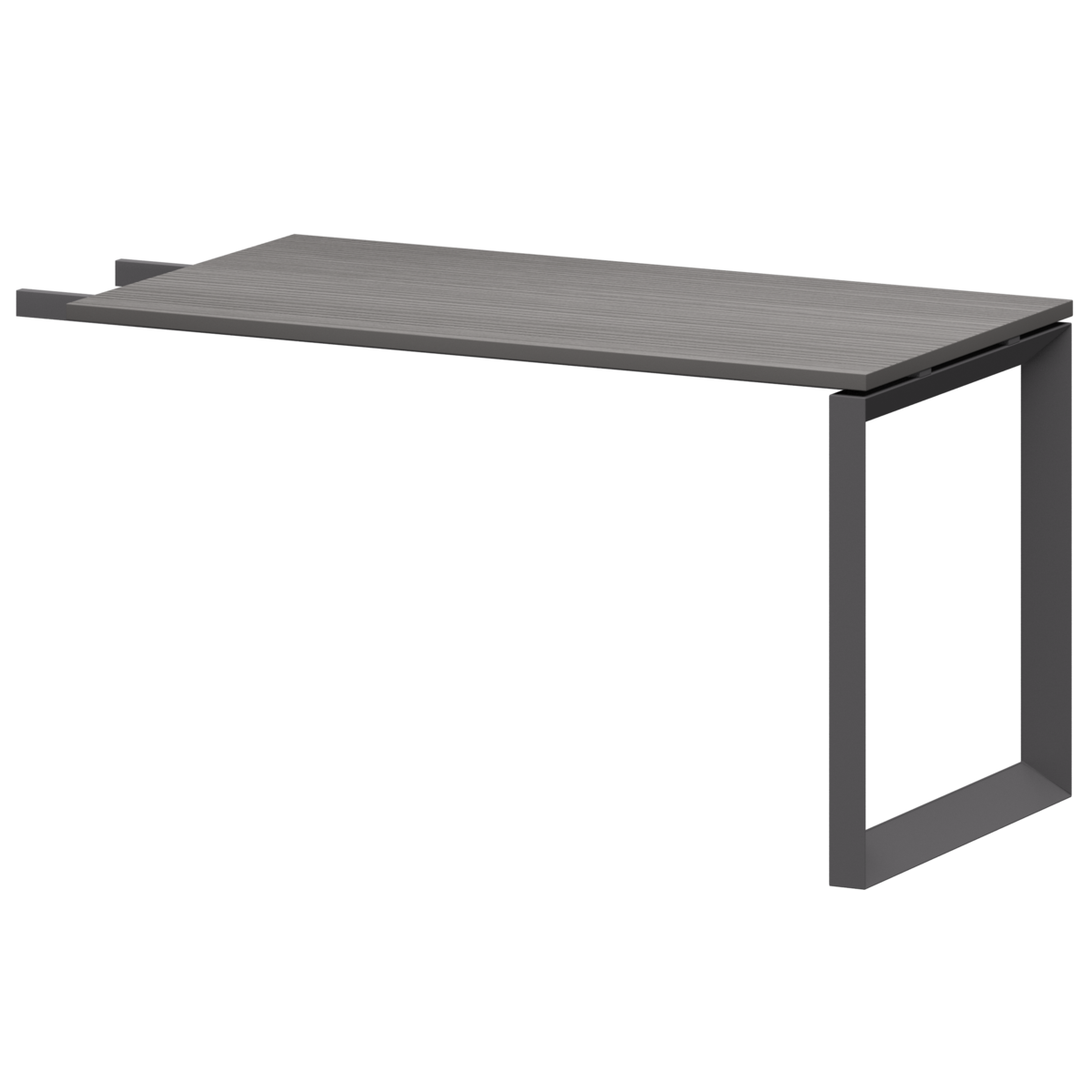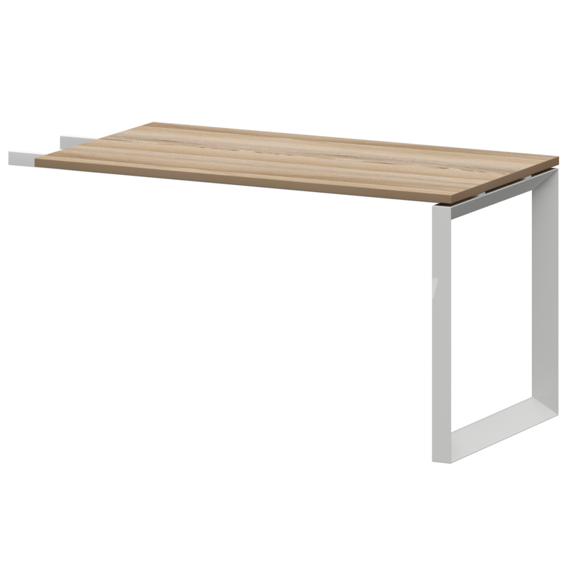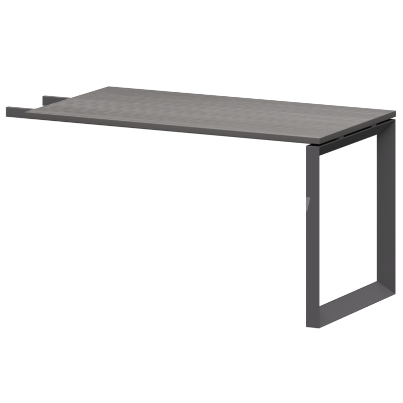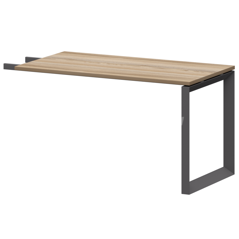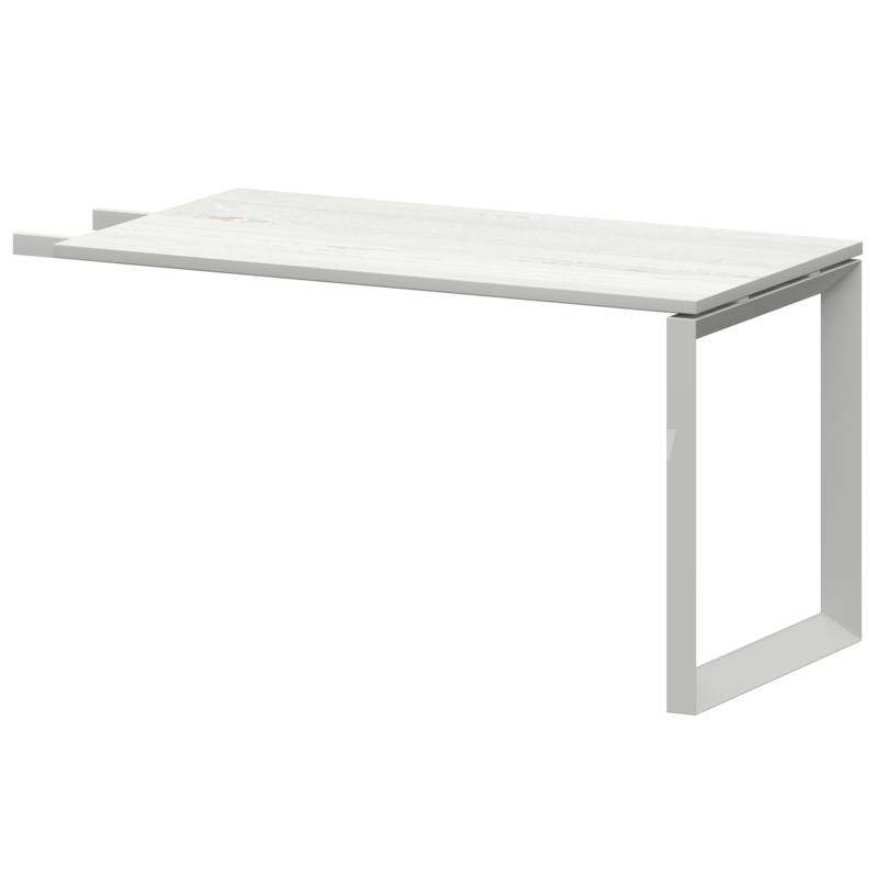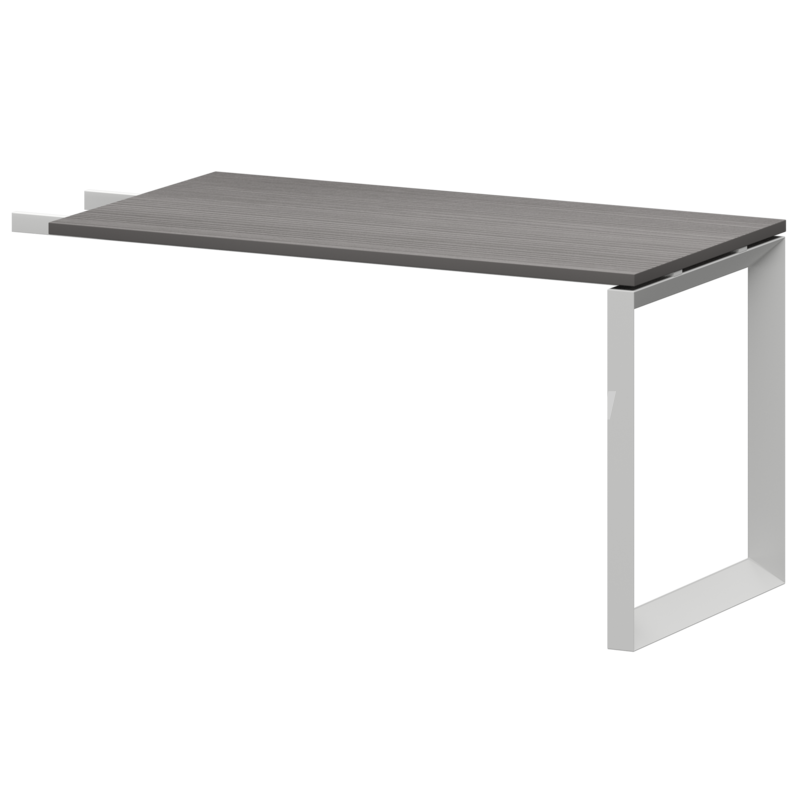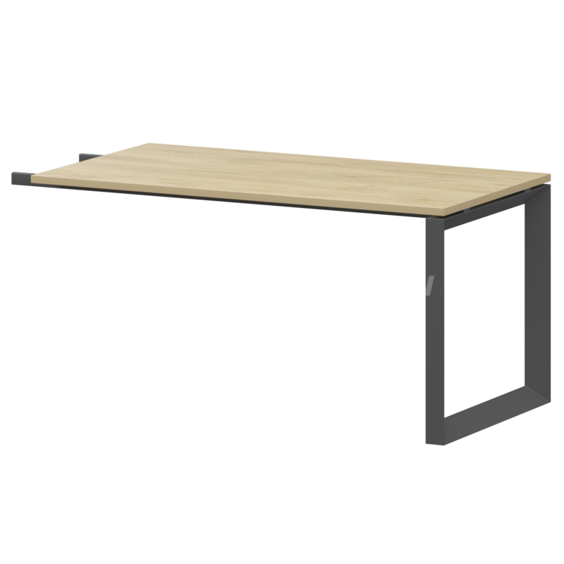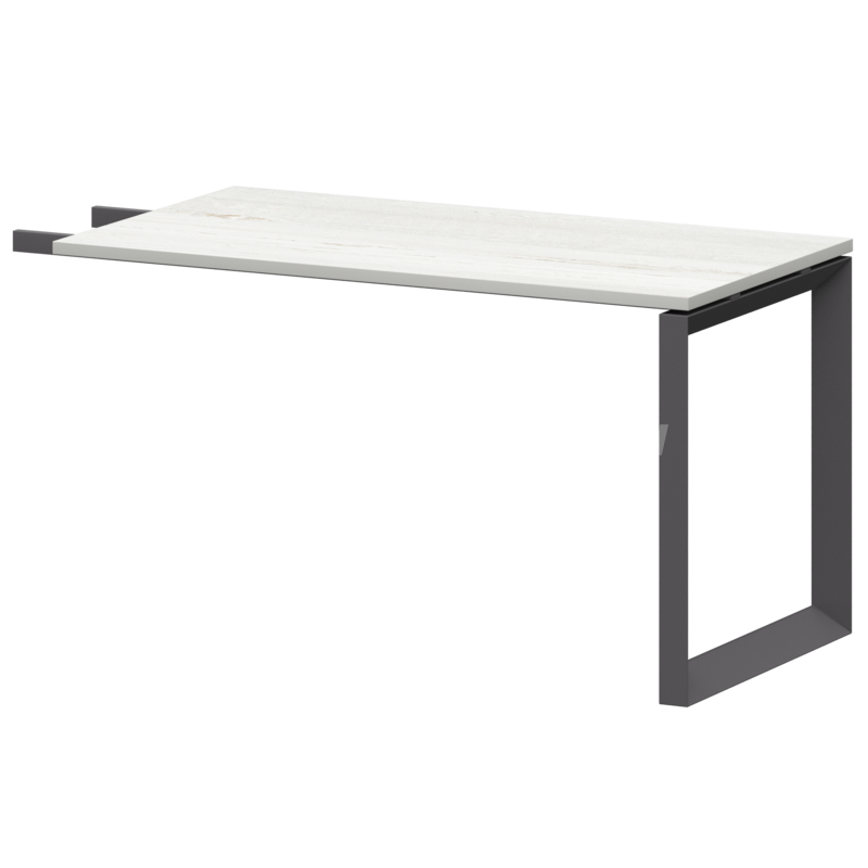 Столешницы соеденены с опорами проставками цвета матовый хром.