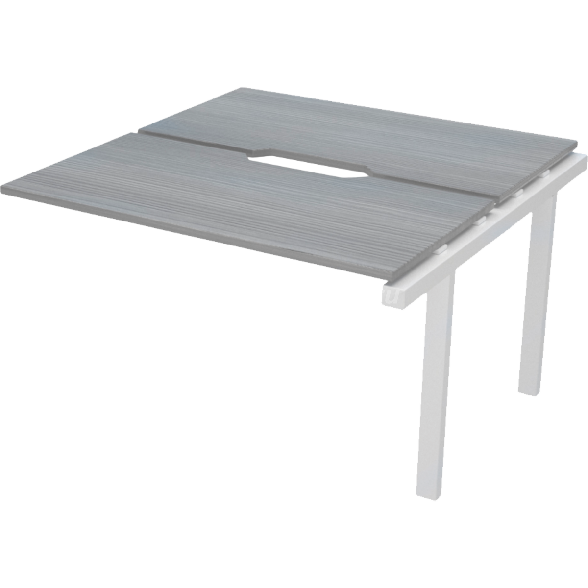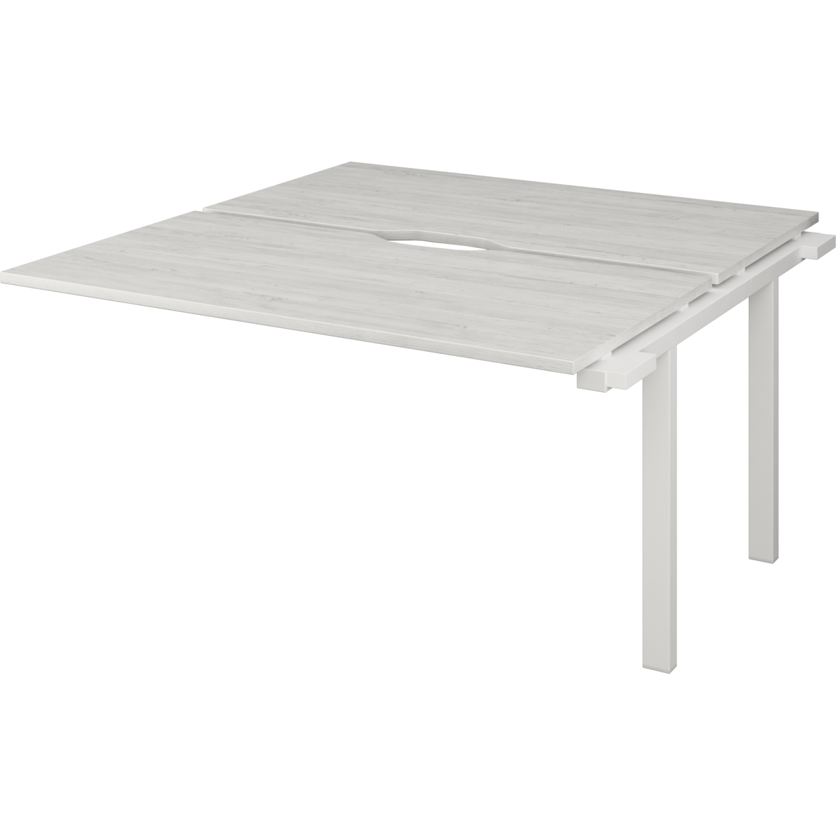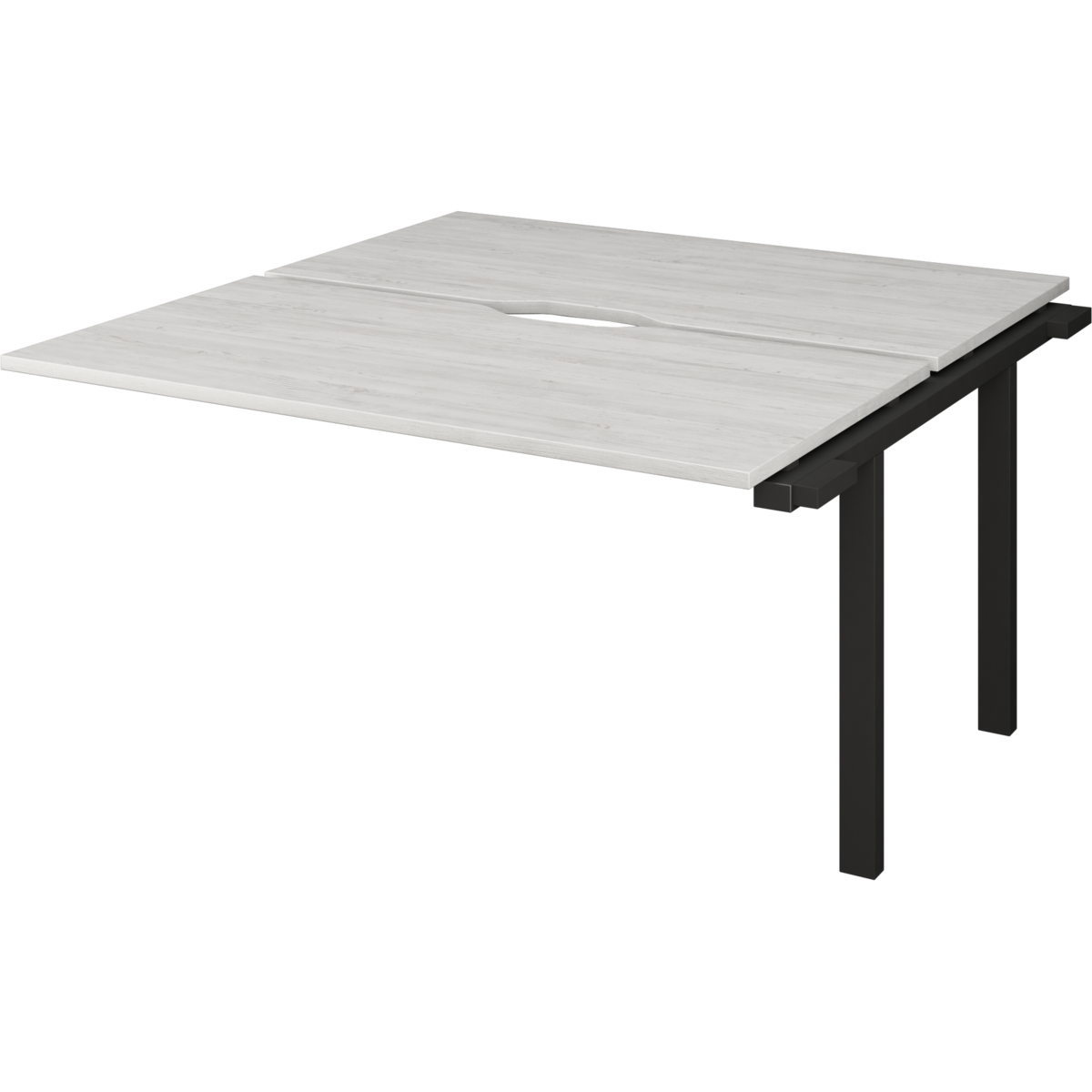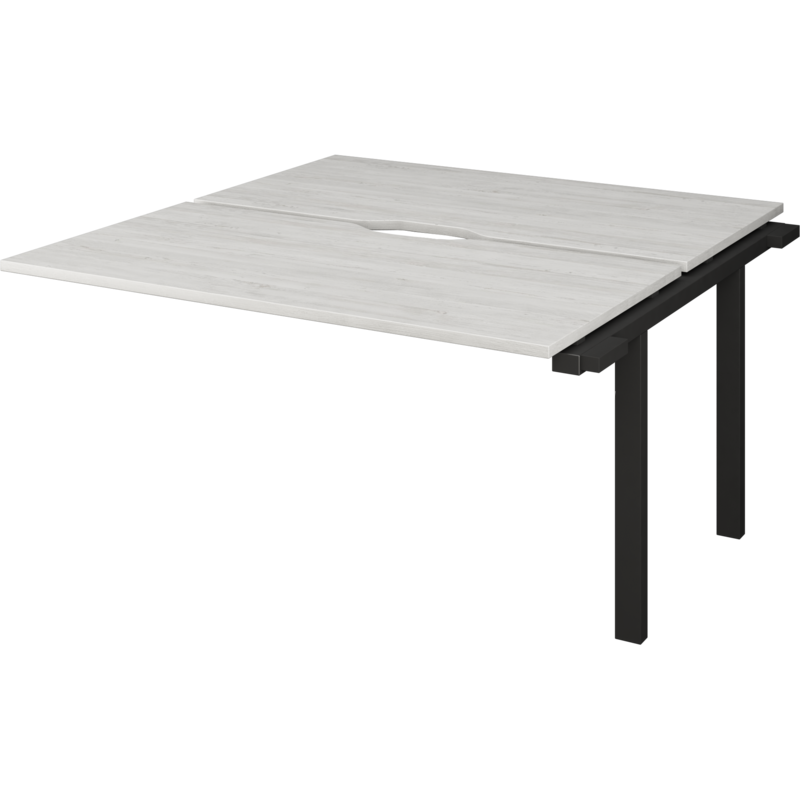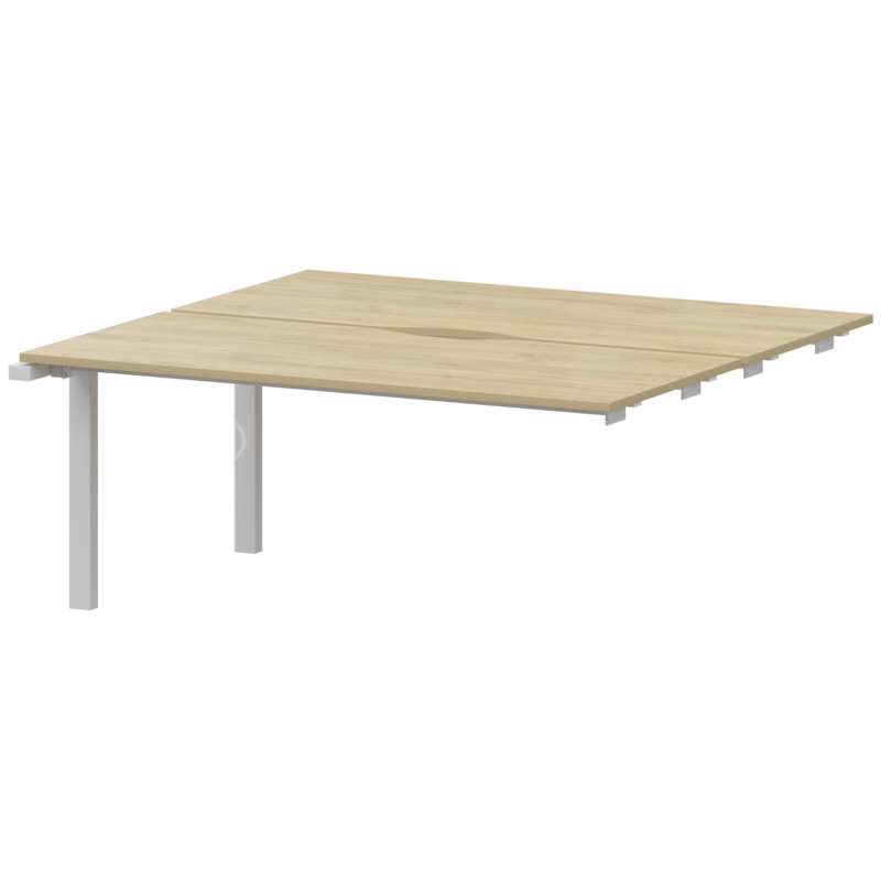 Столешницы соеденены с опорами проставками цвета матовый хром.