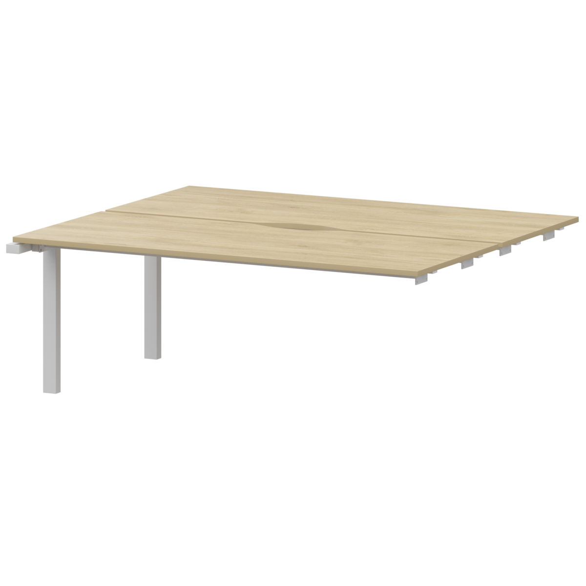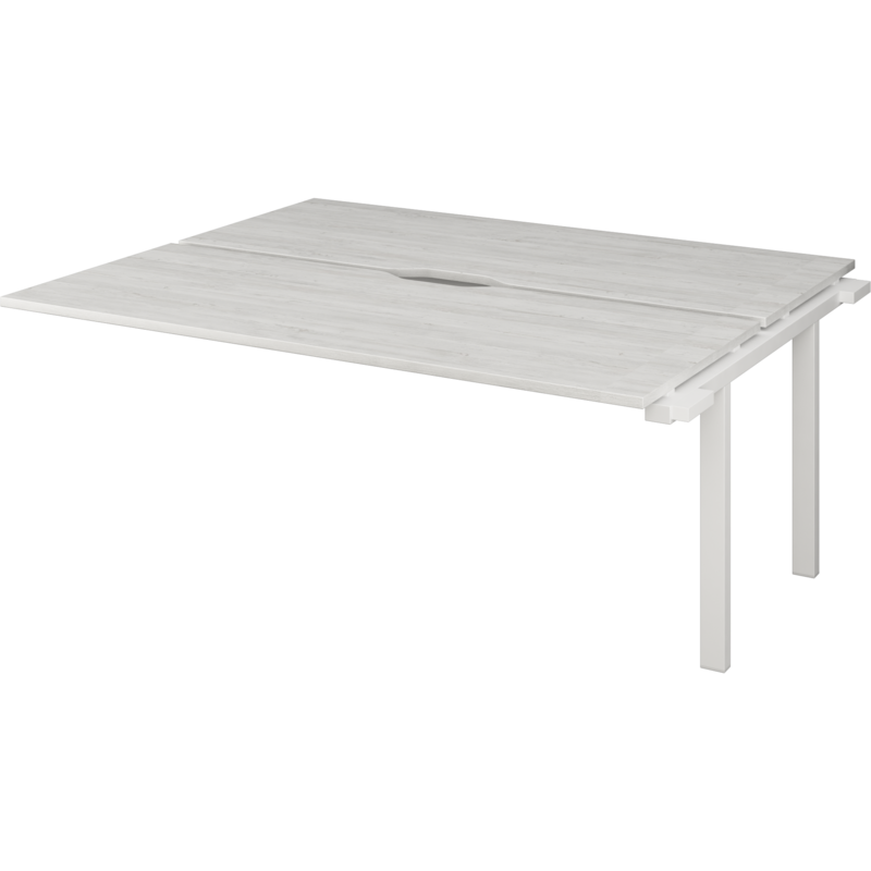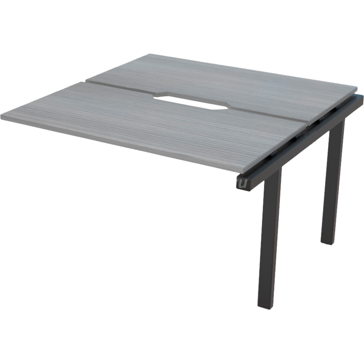 Столешницы соеденены с опорами проставками цвета матовый хром.