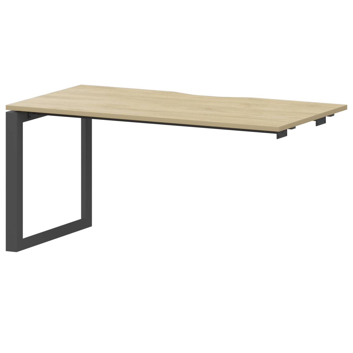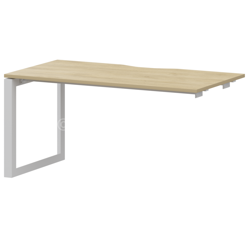 Столешницы соеденены с опорами проставками цвета матовый хром.