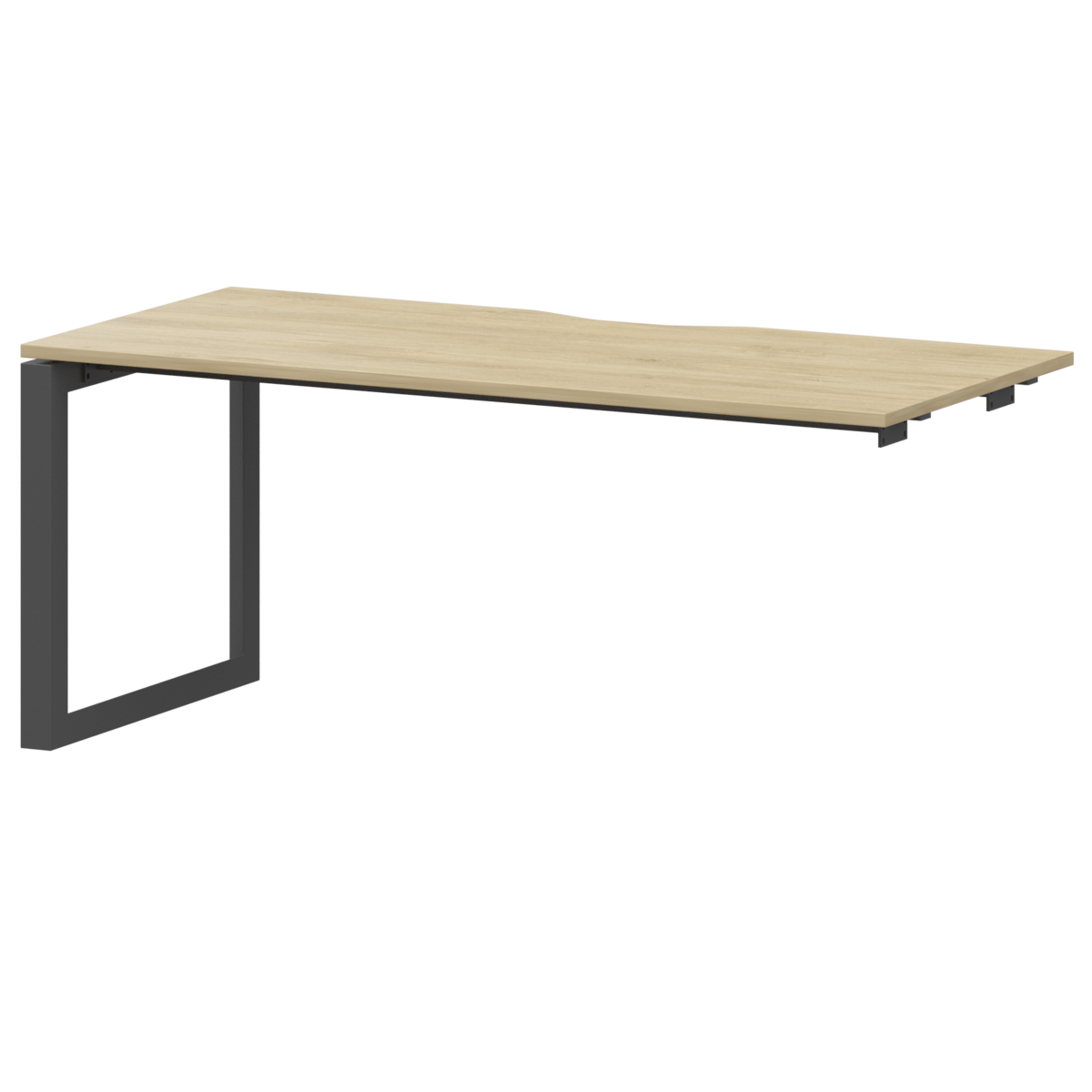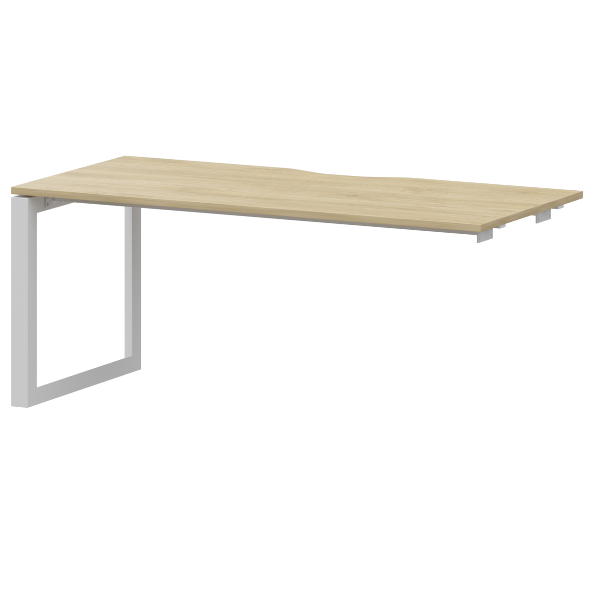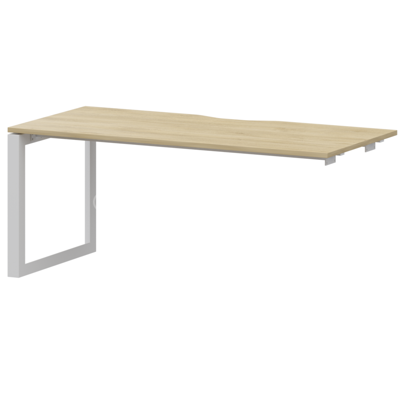 Столешницы соеденены с опорами проставками цвета матовый хром.