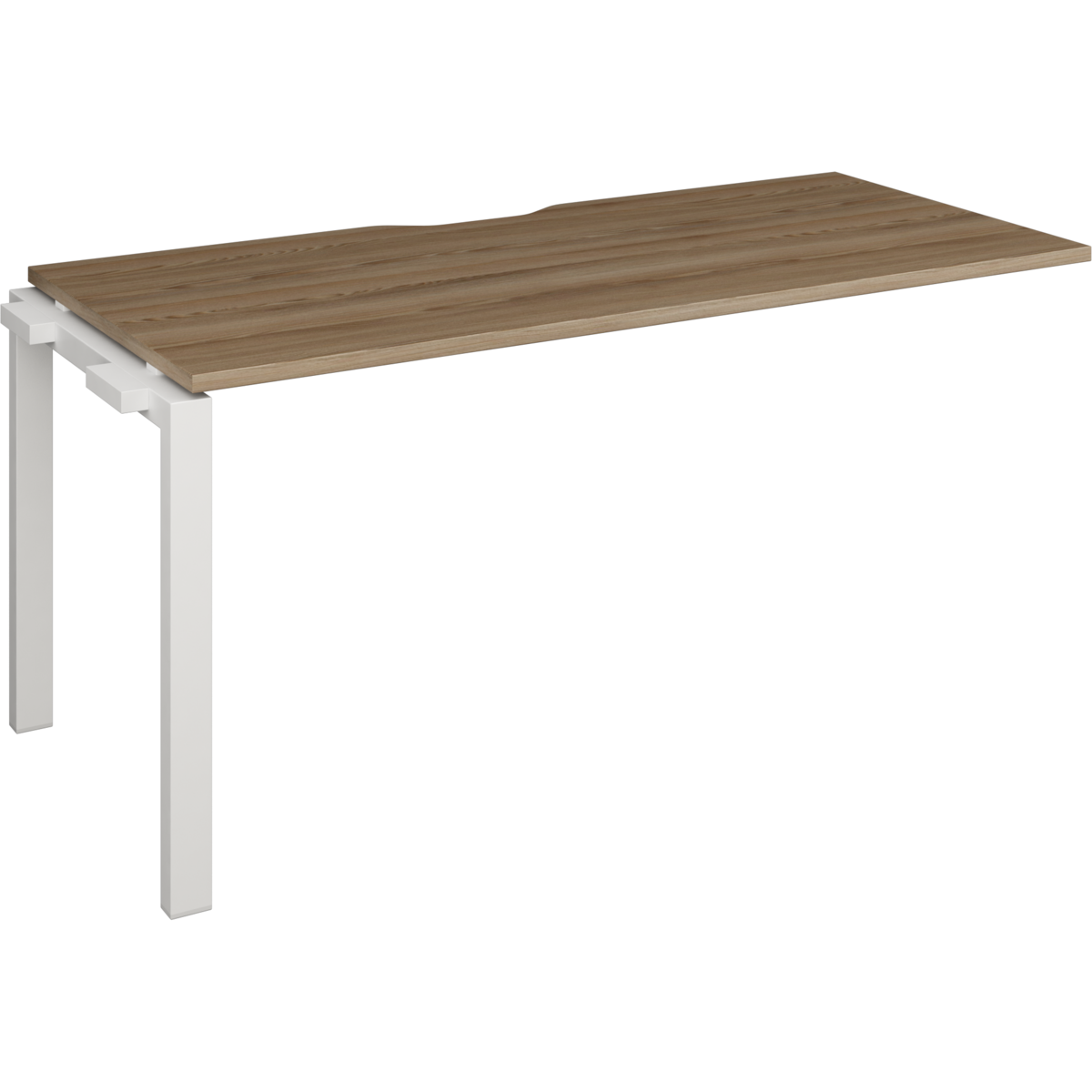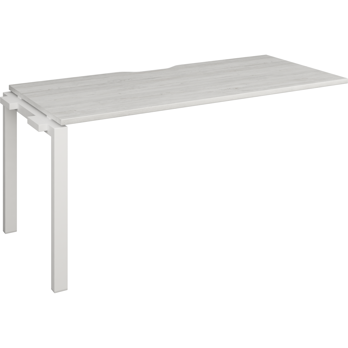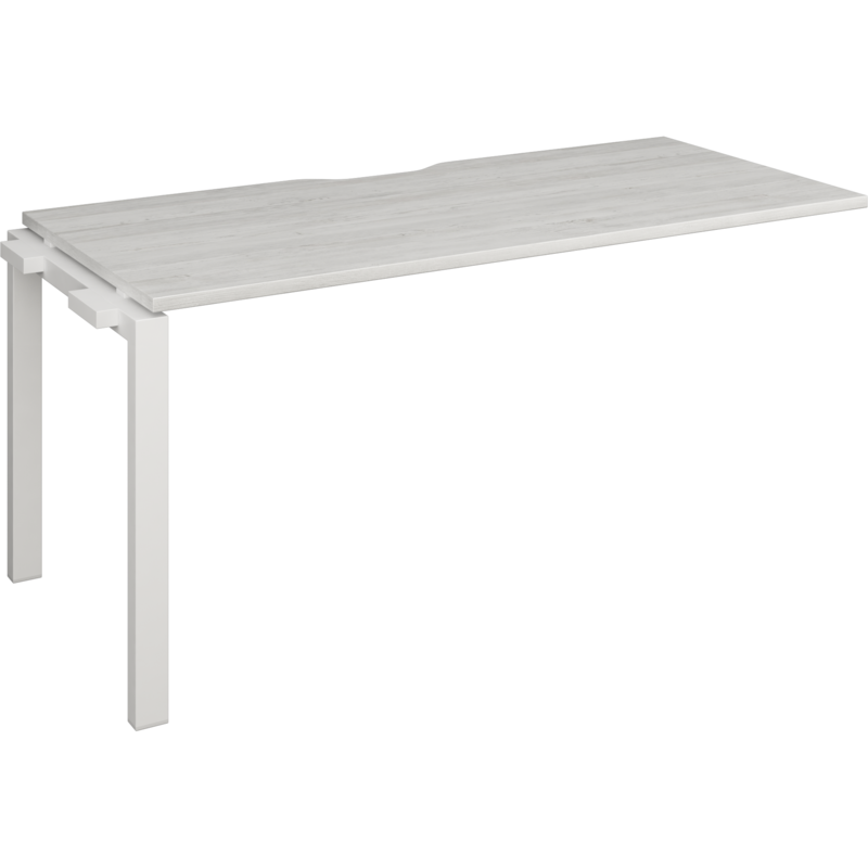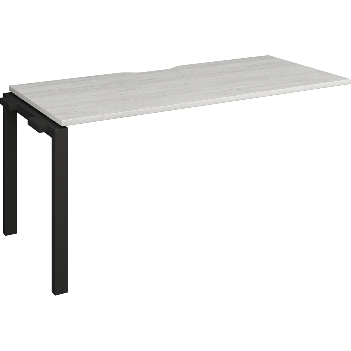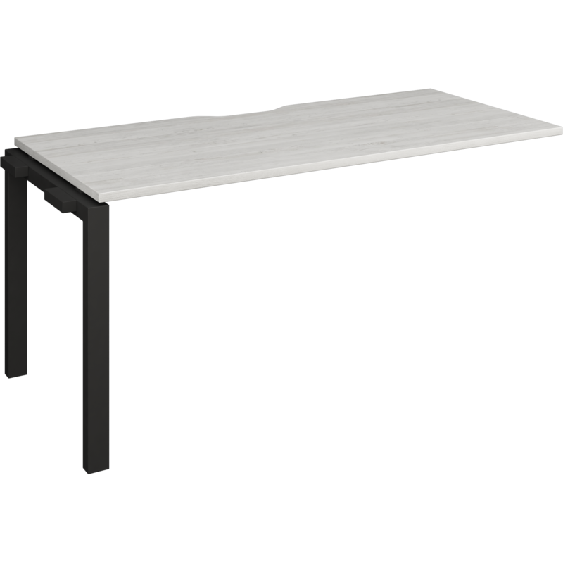 Столешницы соеденены с опорами проставками цвета матовый хром.