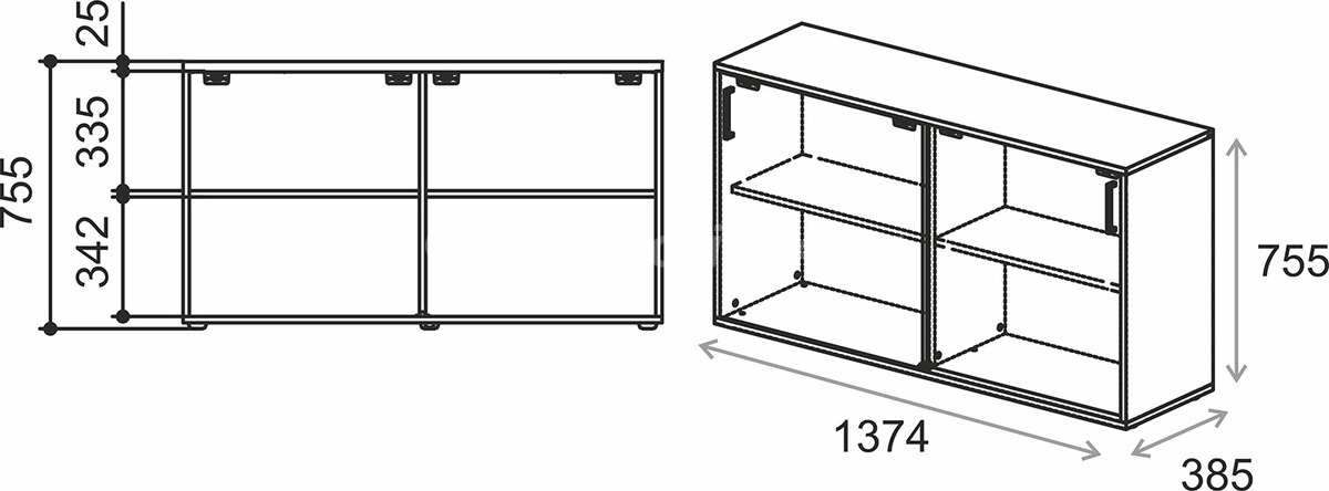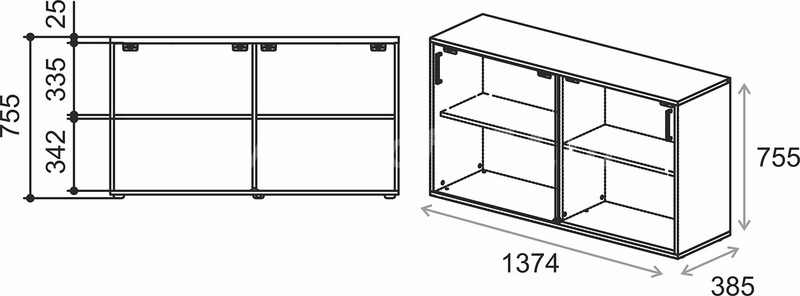 Шкаф-купе низкий Everprof EVO 1374х385х755