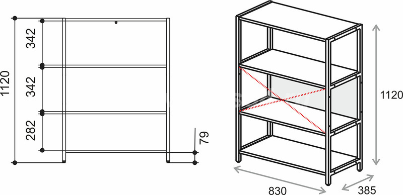 Стеллаж металлический средний Everprof EVO 830х385x1120