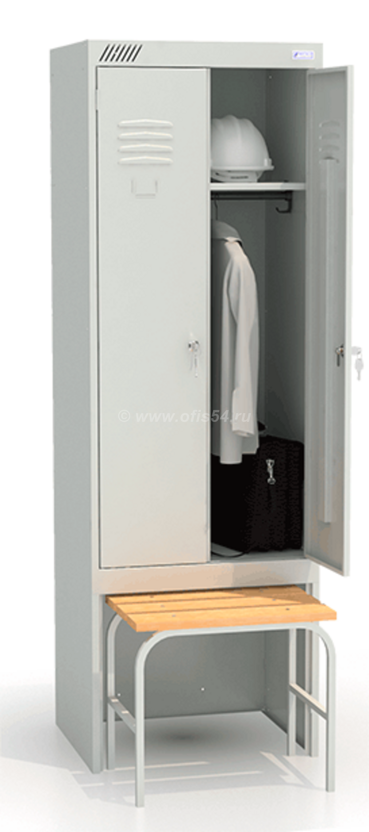 Шкаф комплектуется: двумя замками повышенной секретности, двумя полками под головные уборы, двумя перекладинами, четырьмя крючками.