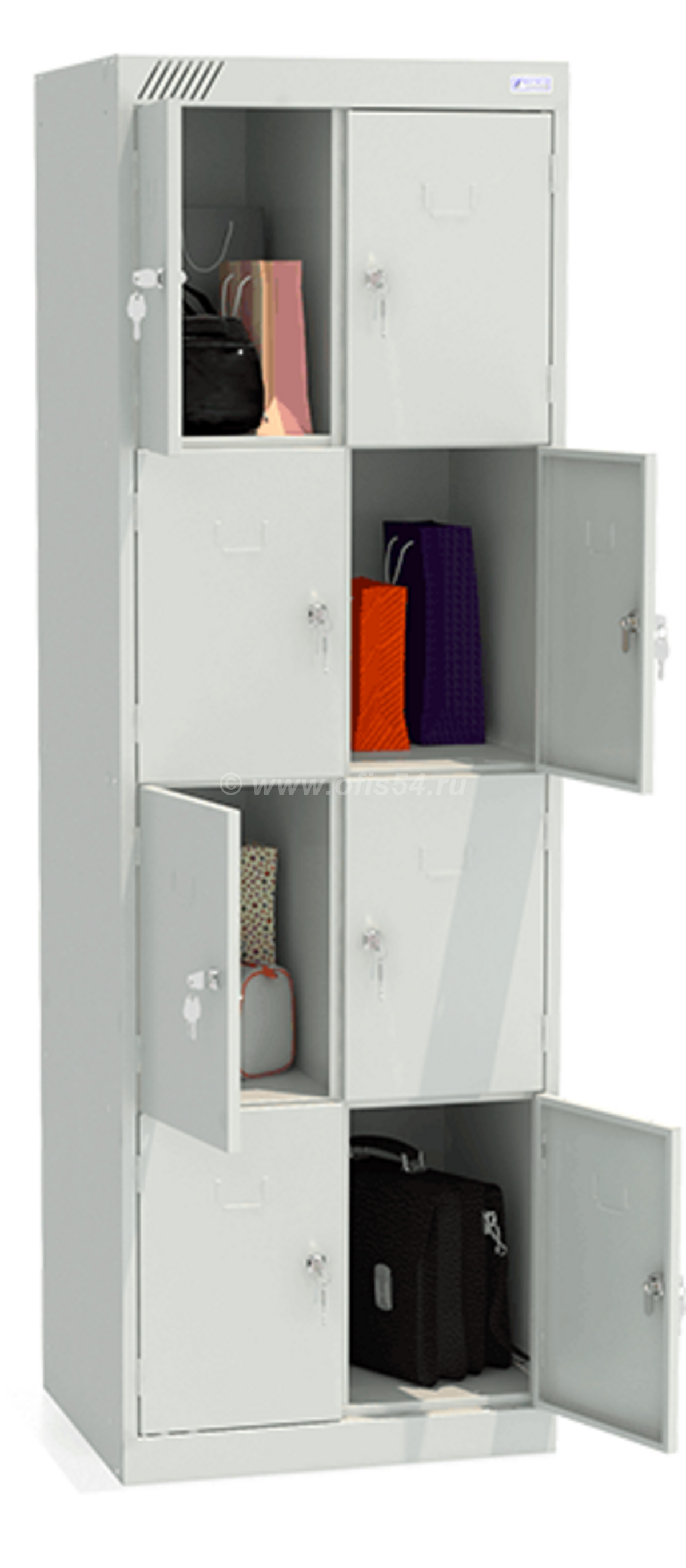 • Шкаф для сумок ШРК-28-600 состоит из двух секций, восьми ячеек.