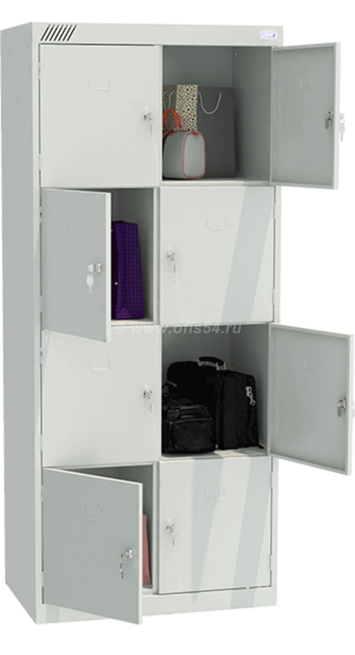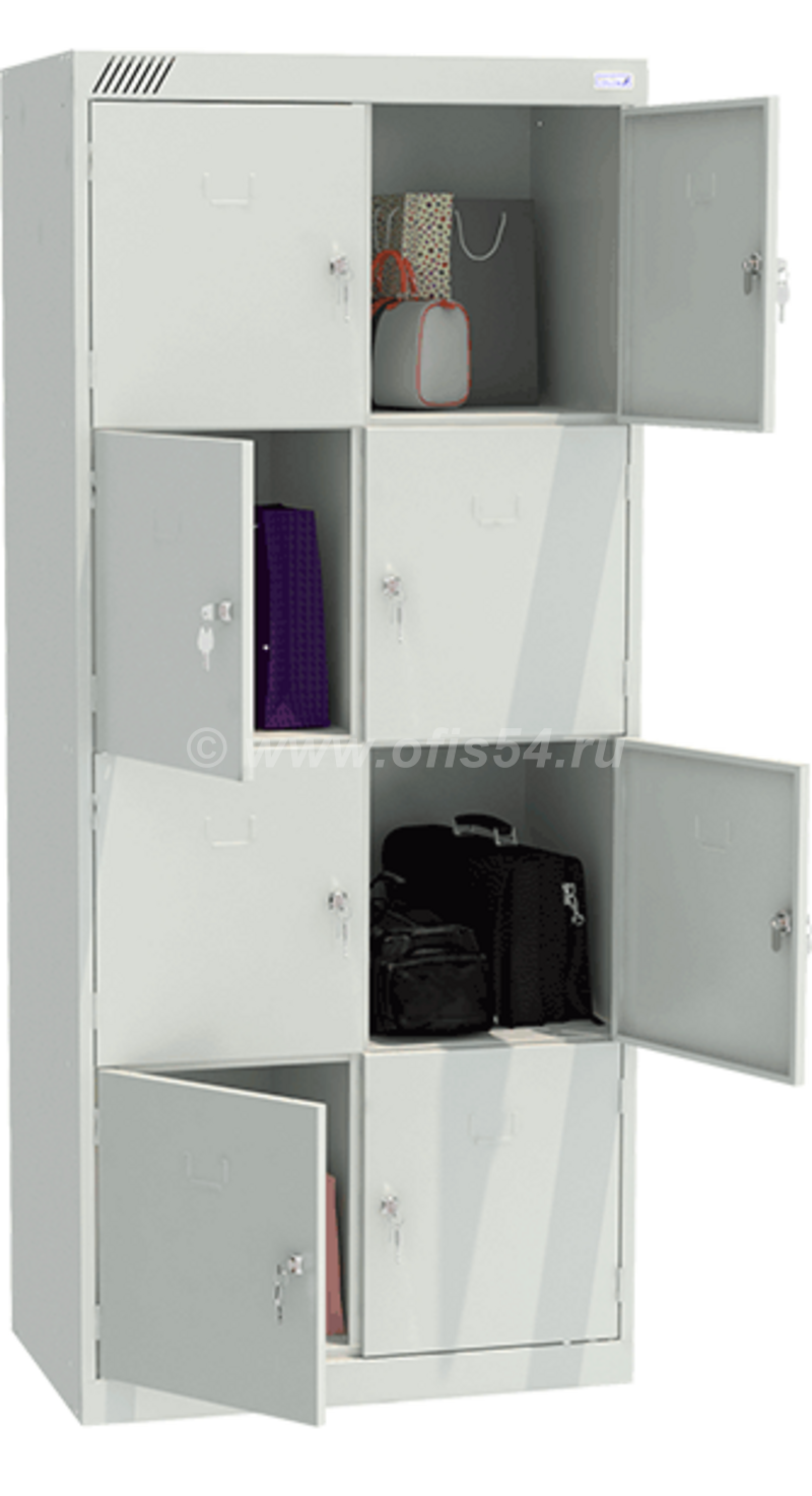• Шкаф для сумок ШРК-28-800 состоит из двух секций, восьми ячеек.
