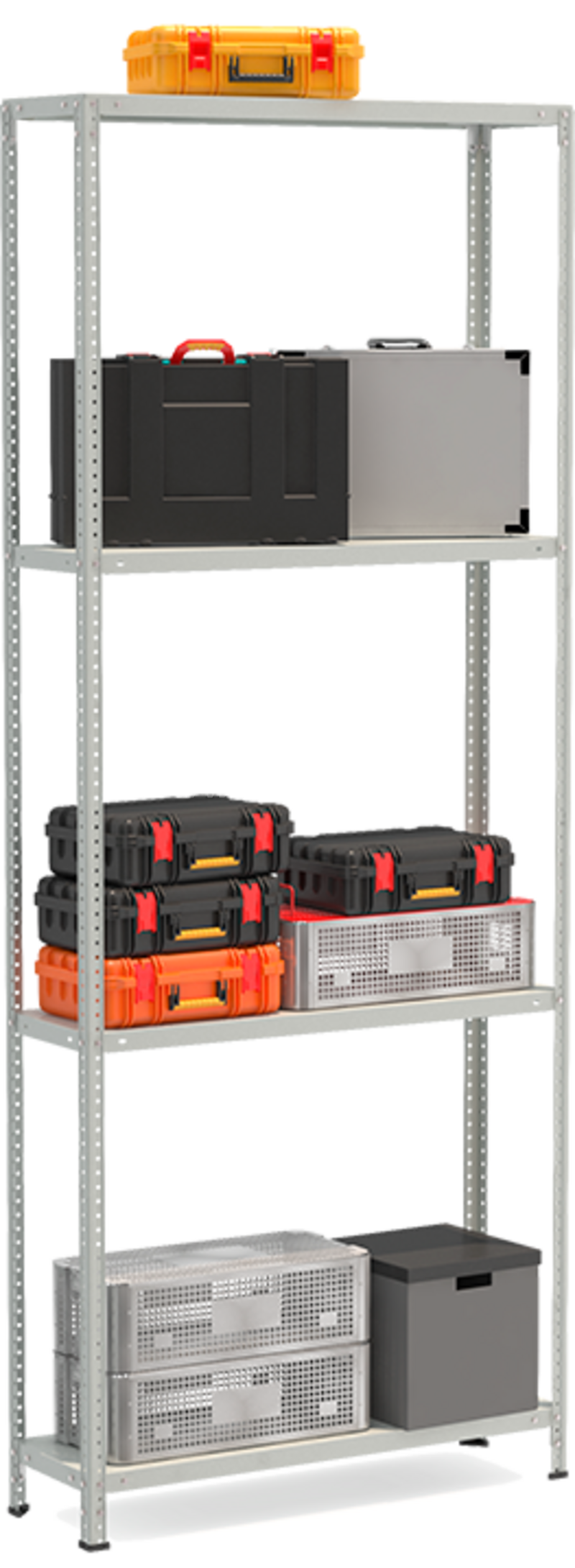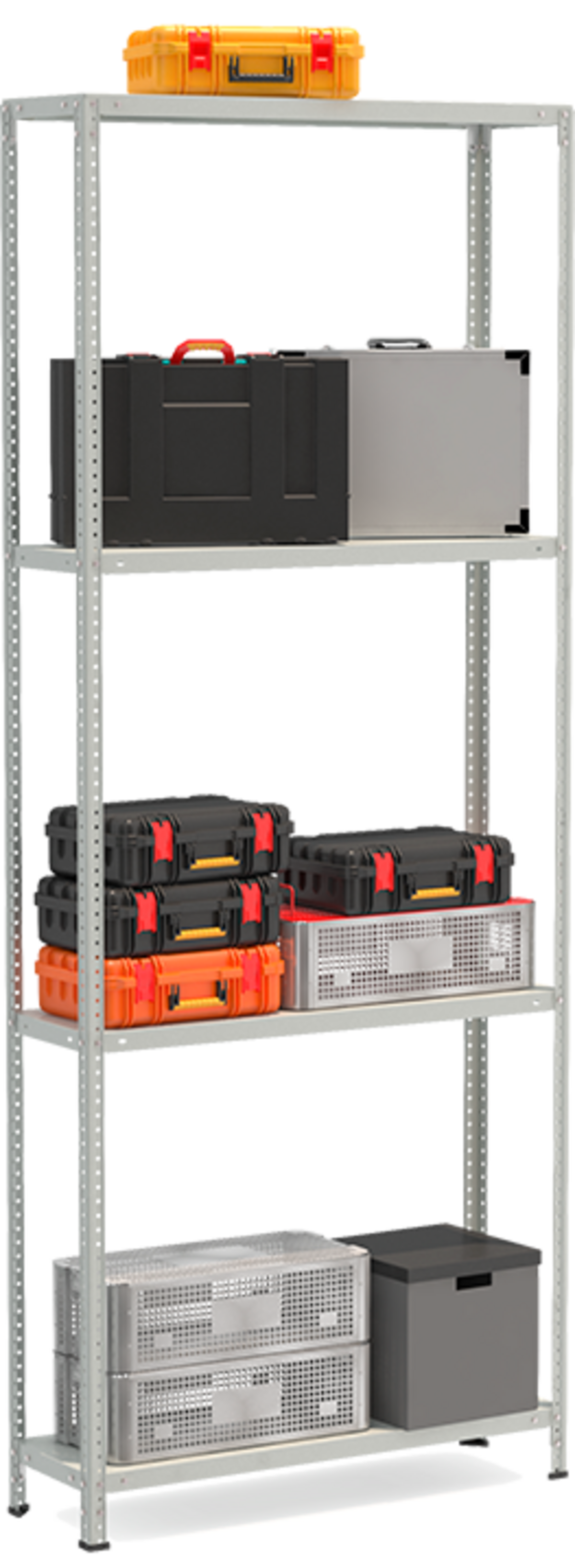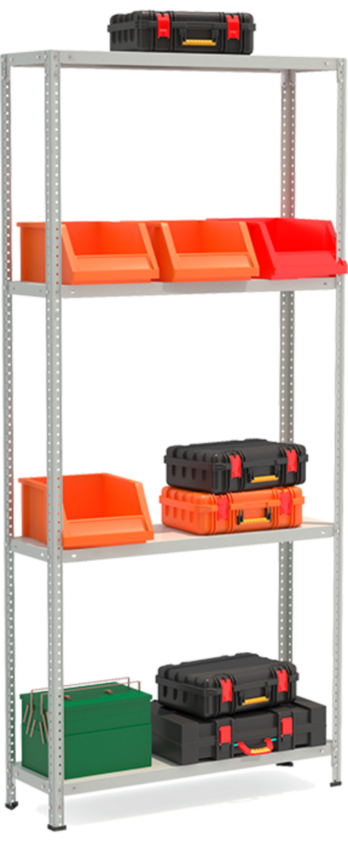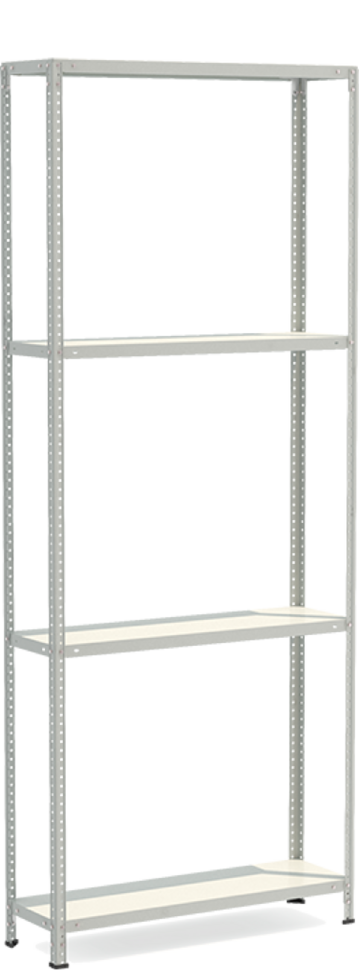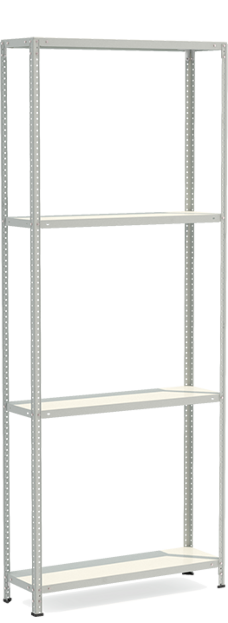 Стойки и полки окрашены полимерной (порошковой) краской RAL 7035 светло-серого цвета.