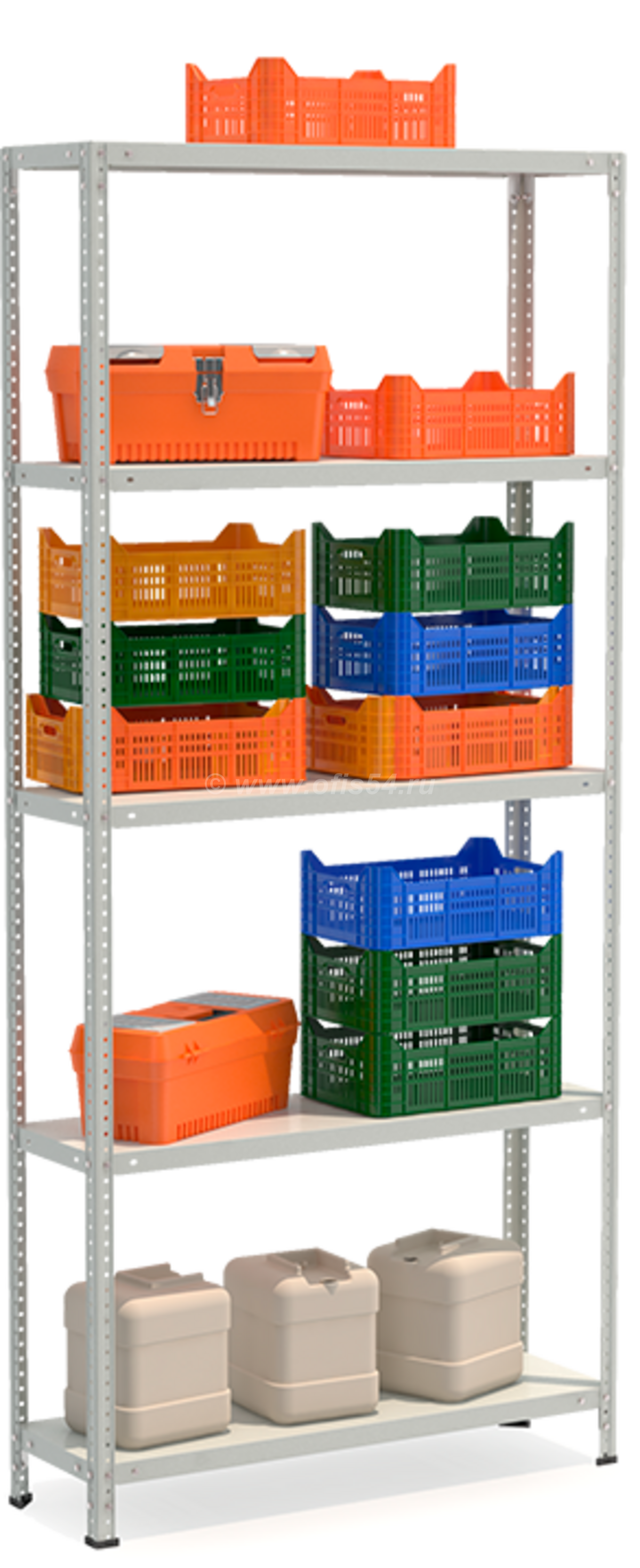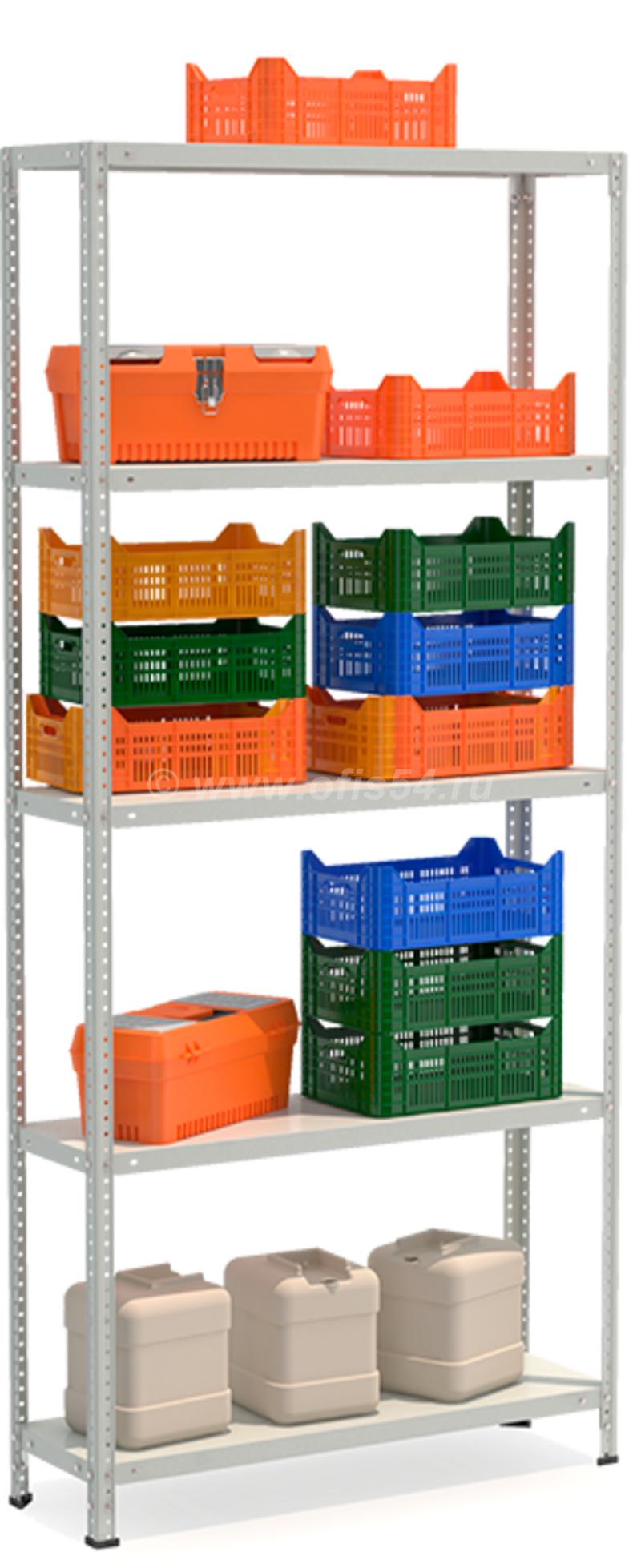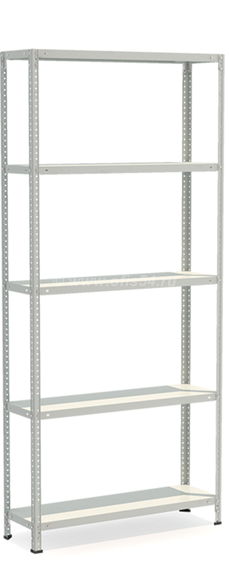 Стойки и полки окрашены полимерной (порошковой) краской RAL 7035 светло-серого цвета.