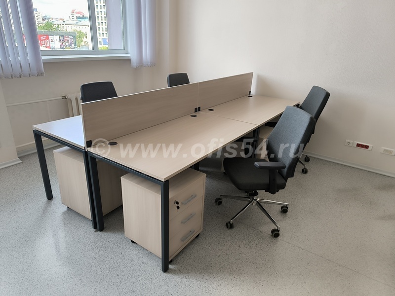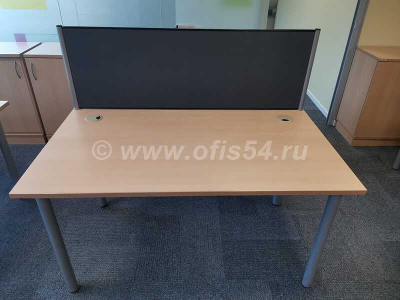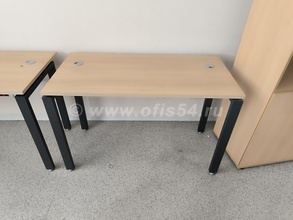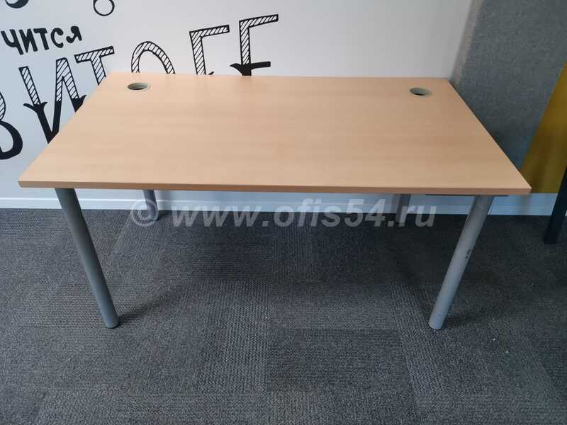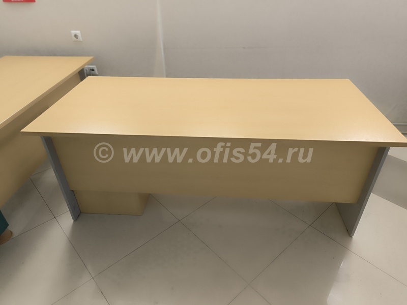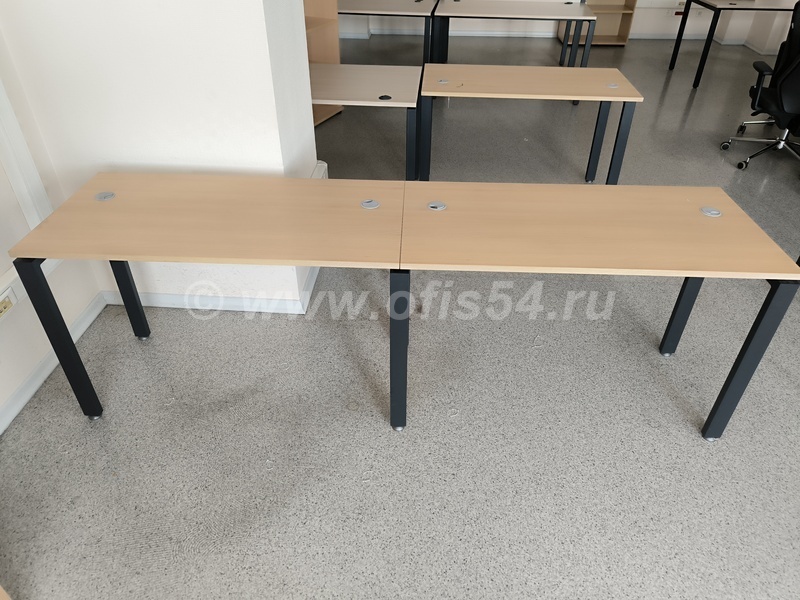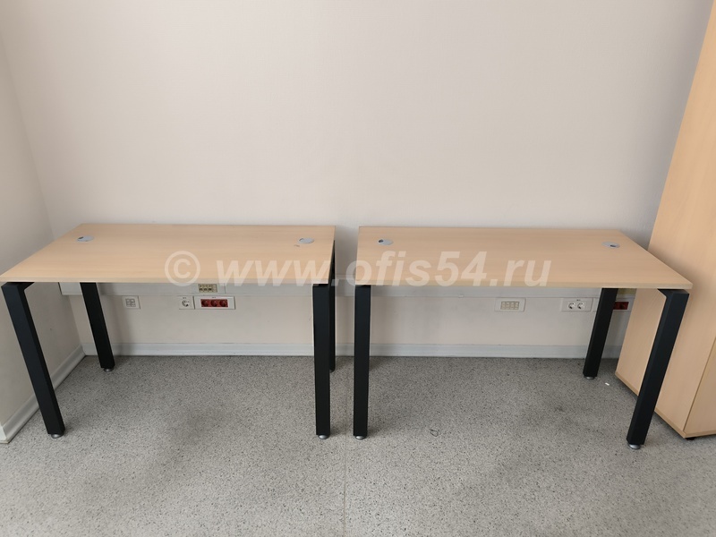 Стол письменный, рабочий на металлическом каркасе, имеет регулировку от неровностей пола, металлический кабель-канал для укладки проводов под столом, отверстие для проводов.