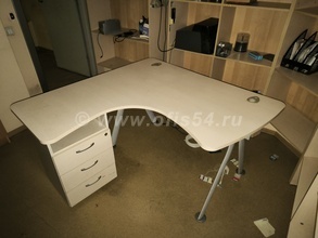 Можно дополнить угловыми столами, тумбами.