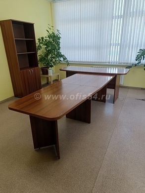 Стол руководителя размер 2100х900х750 мм, цвет орех, выполнен из ЛДСП и МДФ панелей.