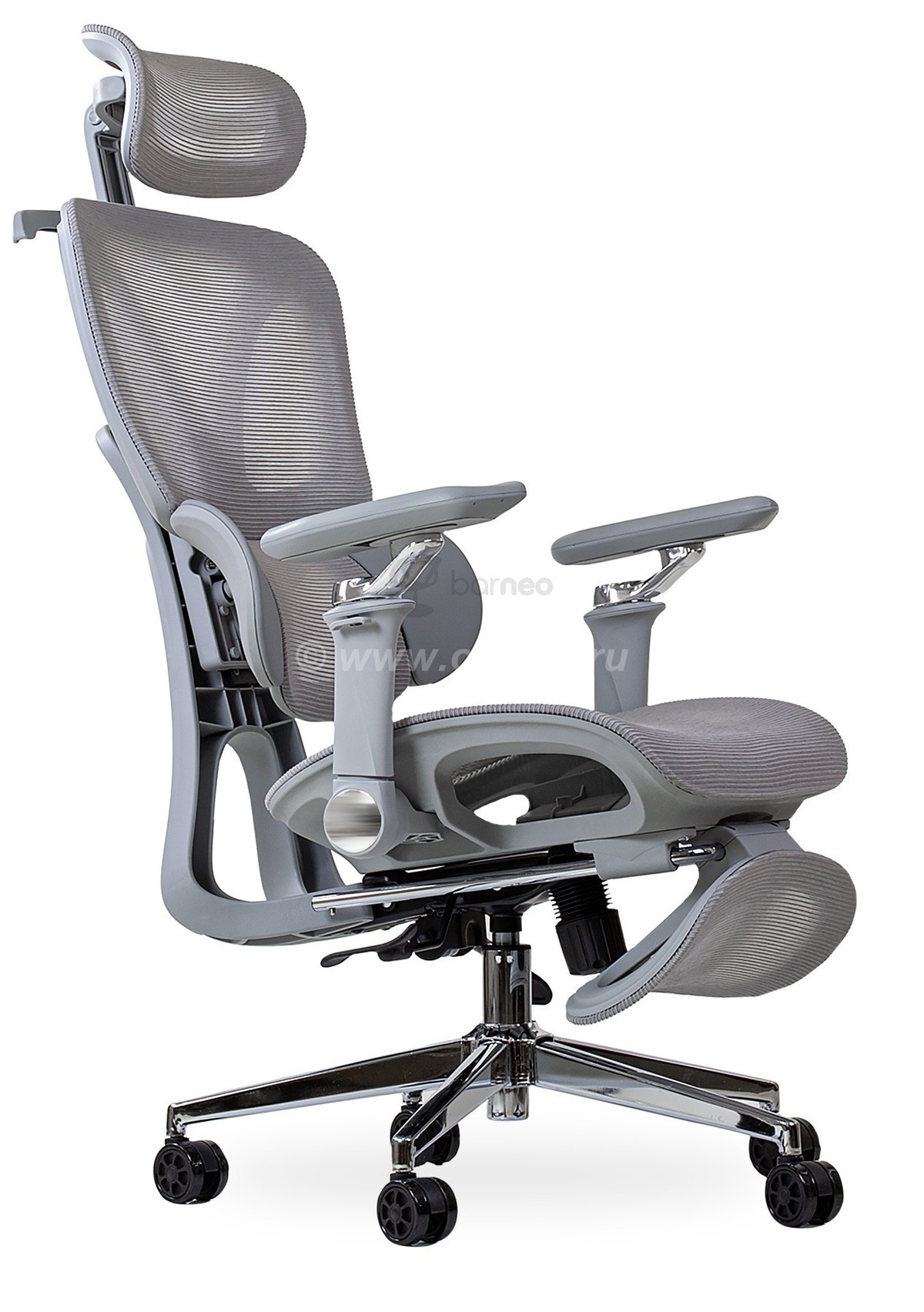 Механизм качания с асинхронным отклонением спинки и сиденья в соотношении 1:3 делает использование кресла особенно комфортным: можно выбрать идеальный угол наклона и зафиксировать его в нескольких положениях. Дополнительно встроен слайдер для регулировки глубины сиденья, что дает возможность настроить кресло индивидуально под рост и предпочтения пользователя.