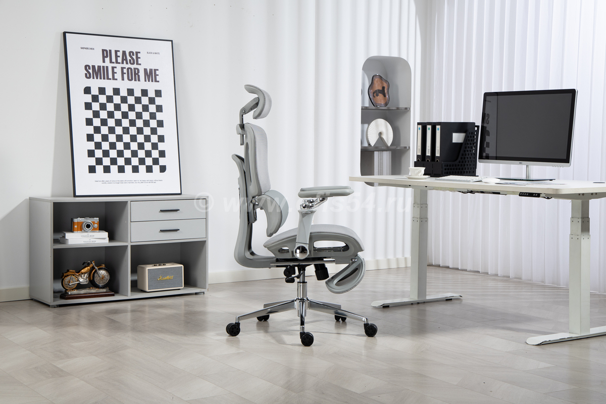 Спинка оснащена адаптивной регулируемой поясничной поддержкой, которая подстраивается под особенности тела и помогает снизить нагрузку на позвоночник. Регулируемый подголовник позволяет расслабить шею и плечи, а подлокотники с 3D регулировкой обеспечивают удобное положение рук.