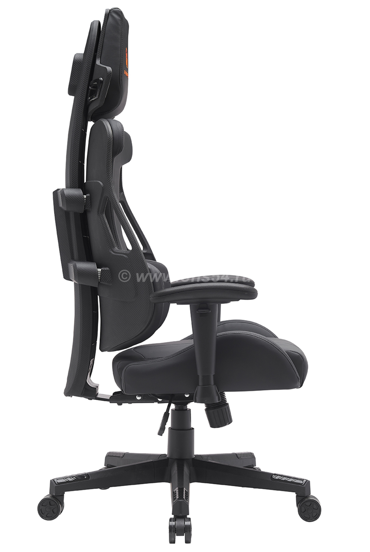 Обивка: Экокожа высокого качества с оранжевой вышивкой придает креслу уникальный и стильный вид.