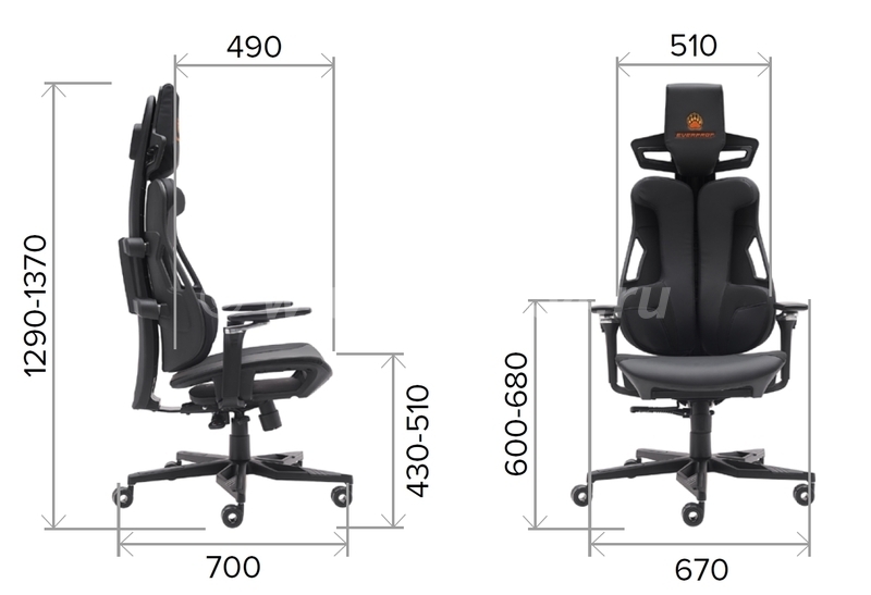 Глубина сиденья 490