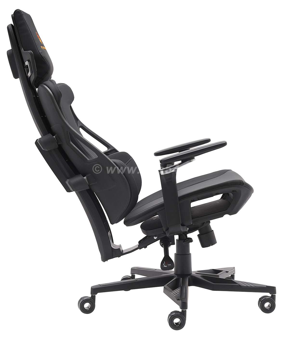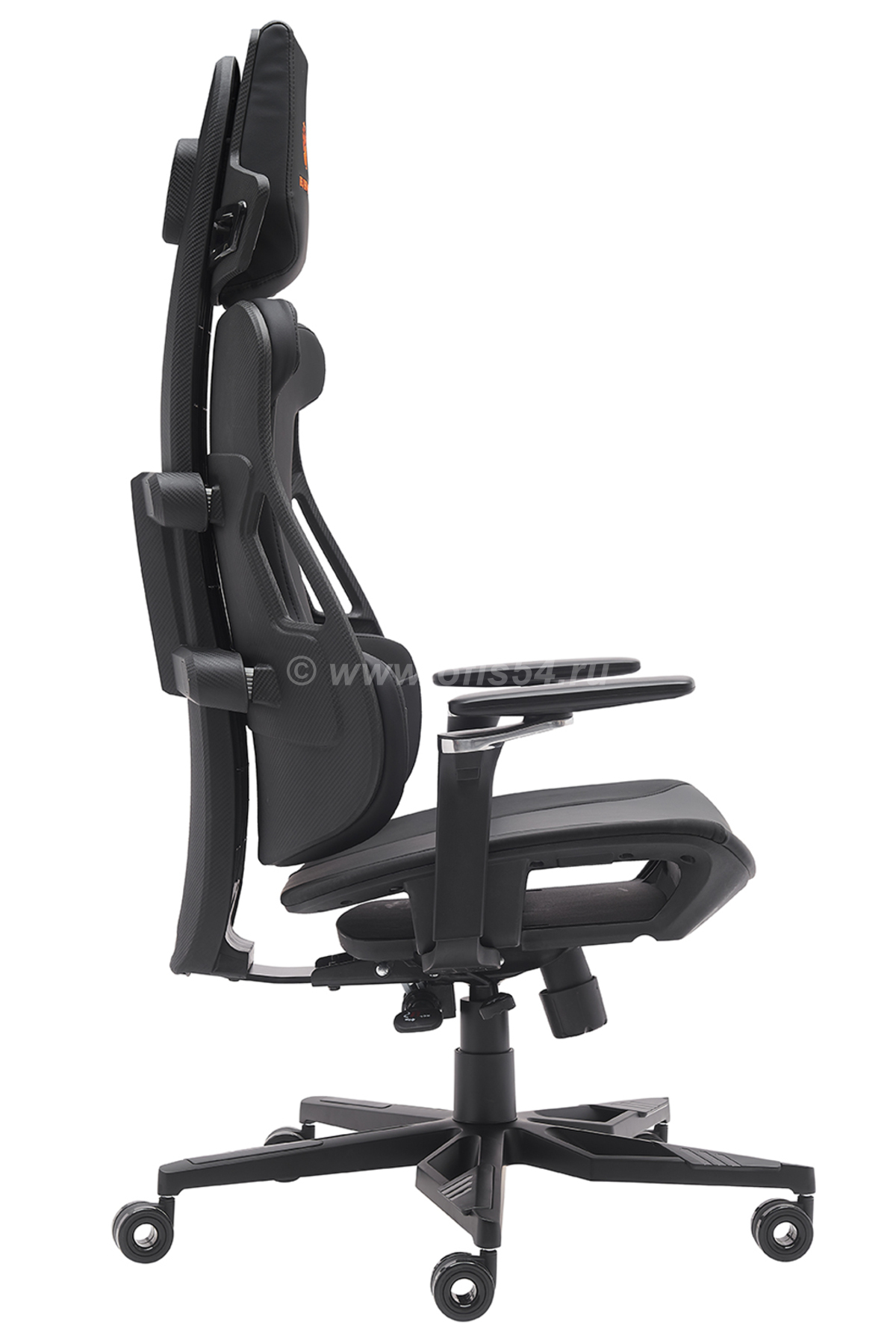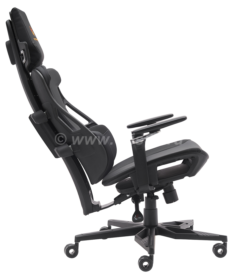 Геймерское кресло Everprof Serval X, обитое черной экокожей со стильной оранжевой вышивкой. Это кресло — идеальный выбор для геймеров, которые стремятся к максимальному комфорту, функциональности и выразительному дизайну в своем игровом пространстве.