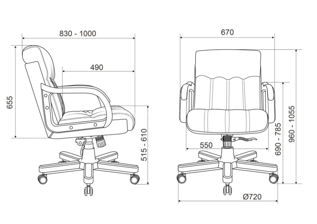 - Высота кресла/стула MIN 960