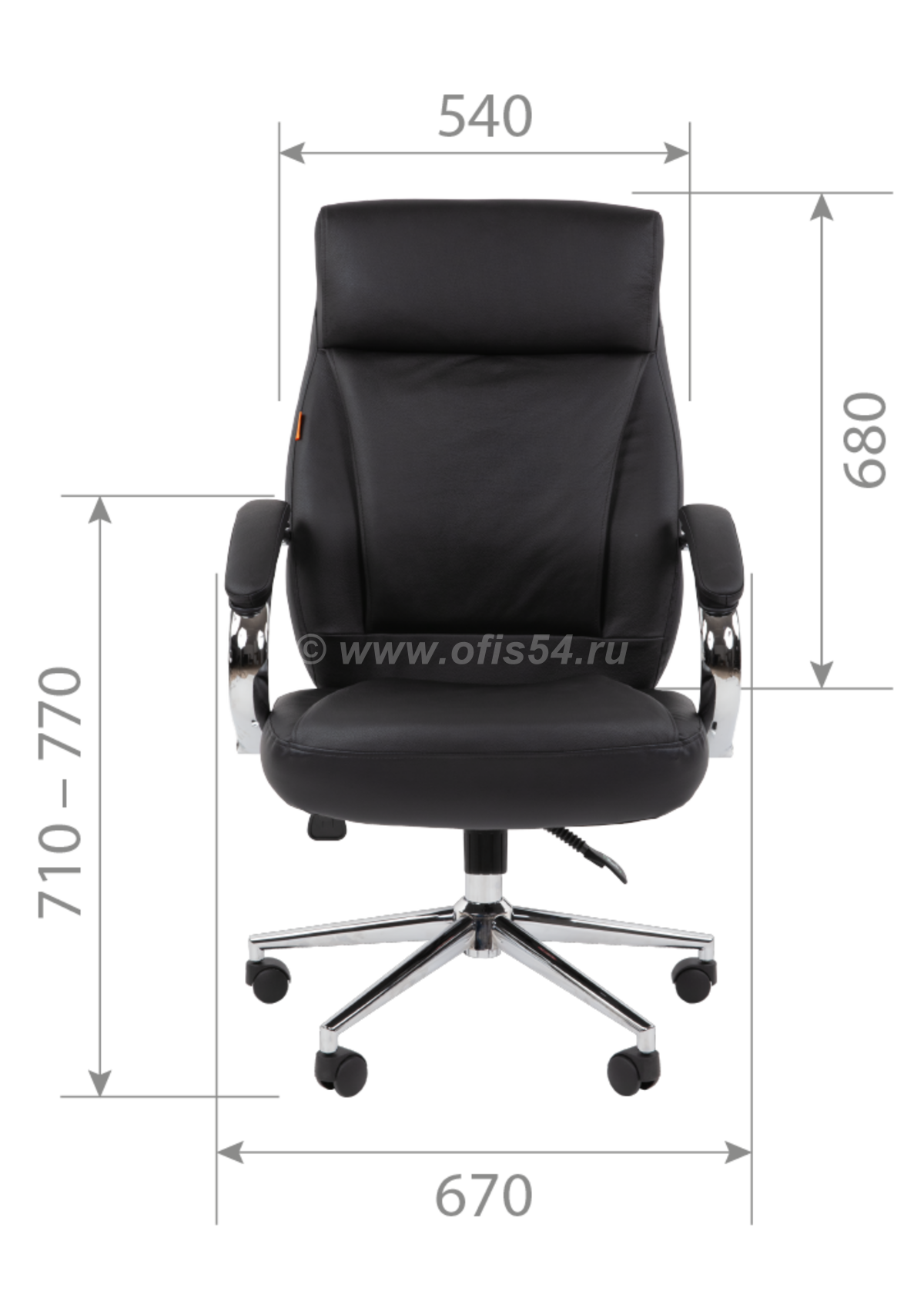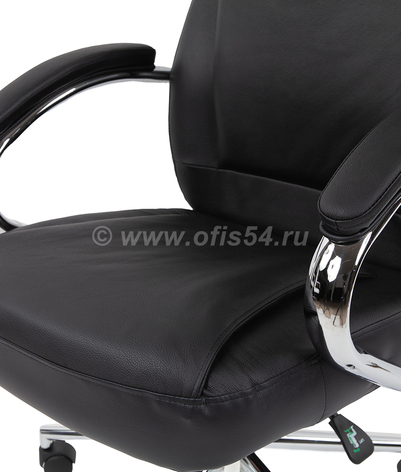 - Подлокотники: Металлические хромированные с мягкими накладками, обитыми натуральной кожей