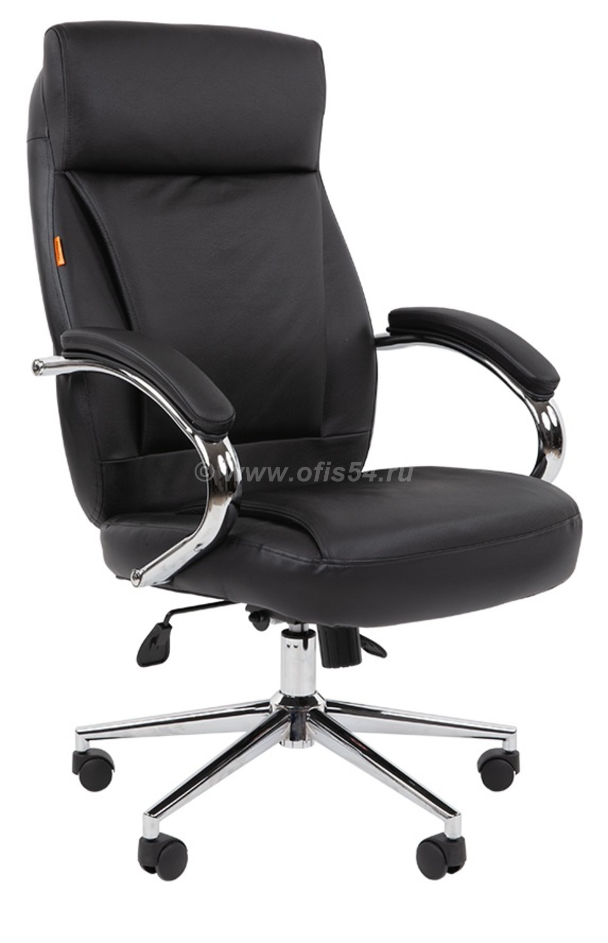 Комфортное руководительское кресло средне-высокого сегмента, обладающее релевантным техническим набором для своего класса: механизм качания с возможностью фиксации в любом положении, мягкие накладки на подлокотниках, форм-фактор сиденья и спинки с ненавязчивой поясничной и боковой поддержкой. Материалы премиального уровня (хромированные крестовина и подлокотники, обивка из натуральной кожи) формируют деловой, строгий и при этом объективно дорогой визуальный образ.