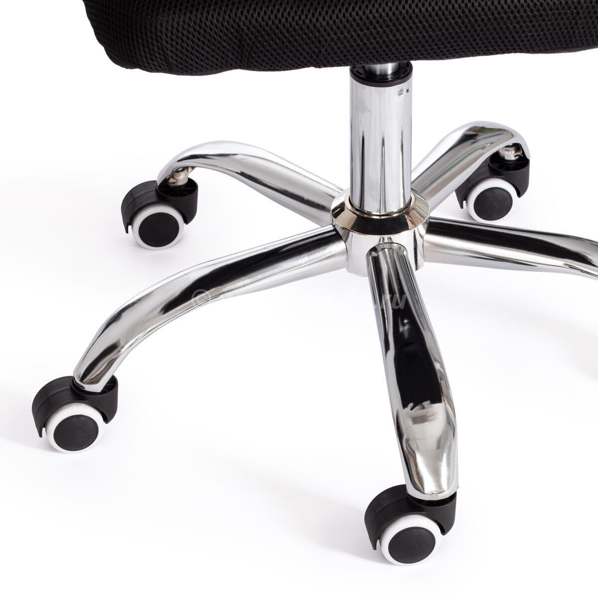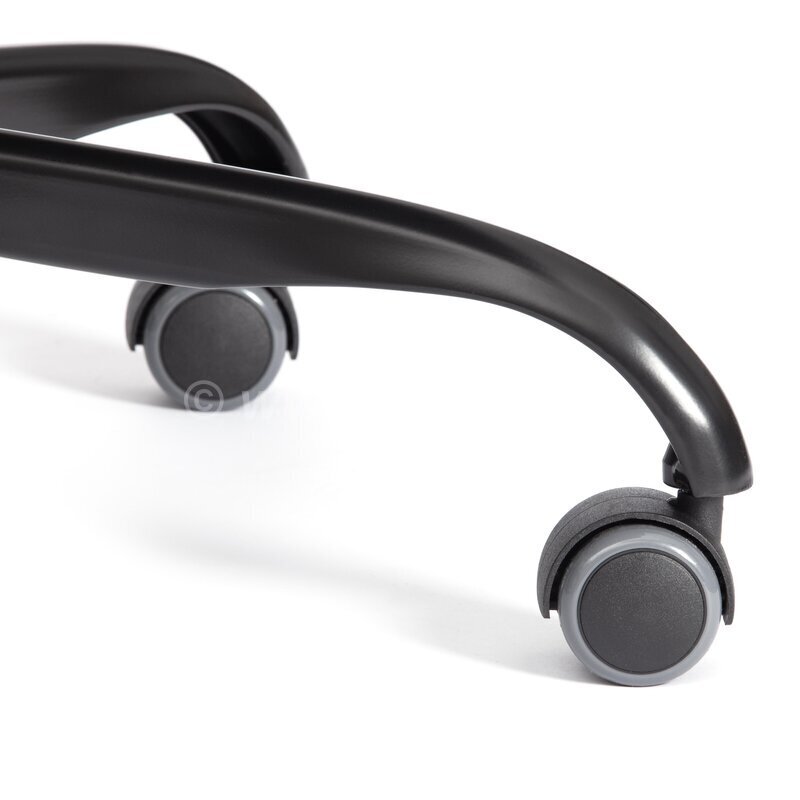 Полиуретановые ролики с прорезиненными вставками бесшумны, не повреждают напольное покрытие. Ролики и крестовина соответствуют стандарту BIFMA.