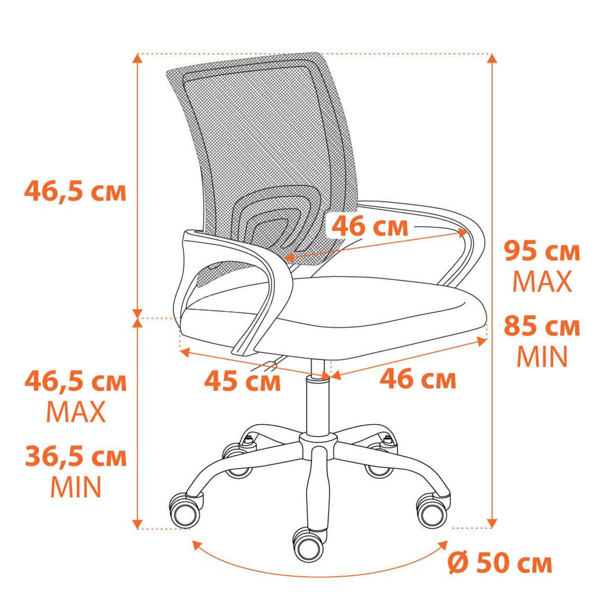 Cтальная крестовина покрытая черной порошковой краской (разборная), толщина стенки трубы 1,1 мм Соответствует стандарту BIFMA. Диаметр крестовины 700 мм. Крестовина обладает долгим сроком службы, не требует сложного ухода, не теряет своего первоначального внешнего вида на протяжении длительного времени.