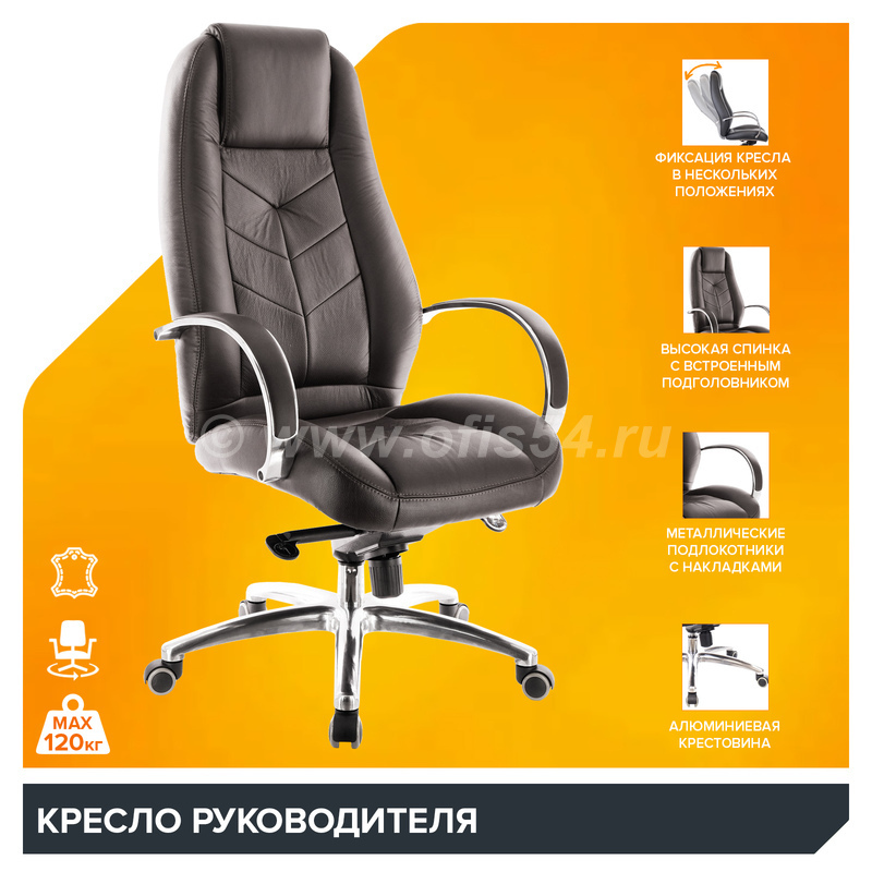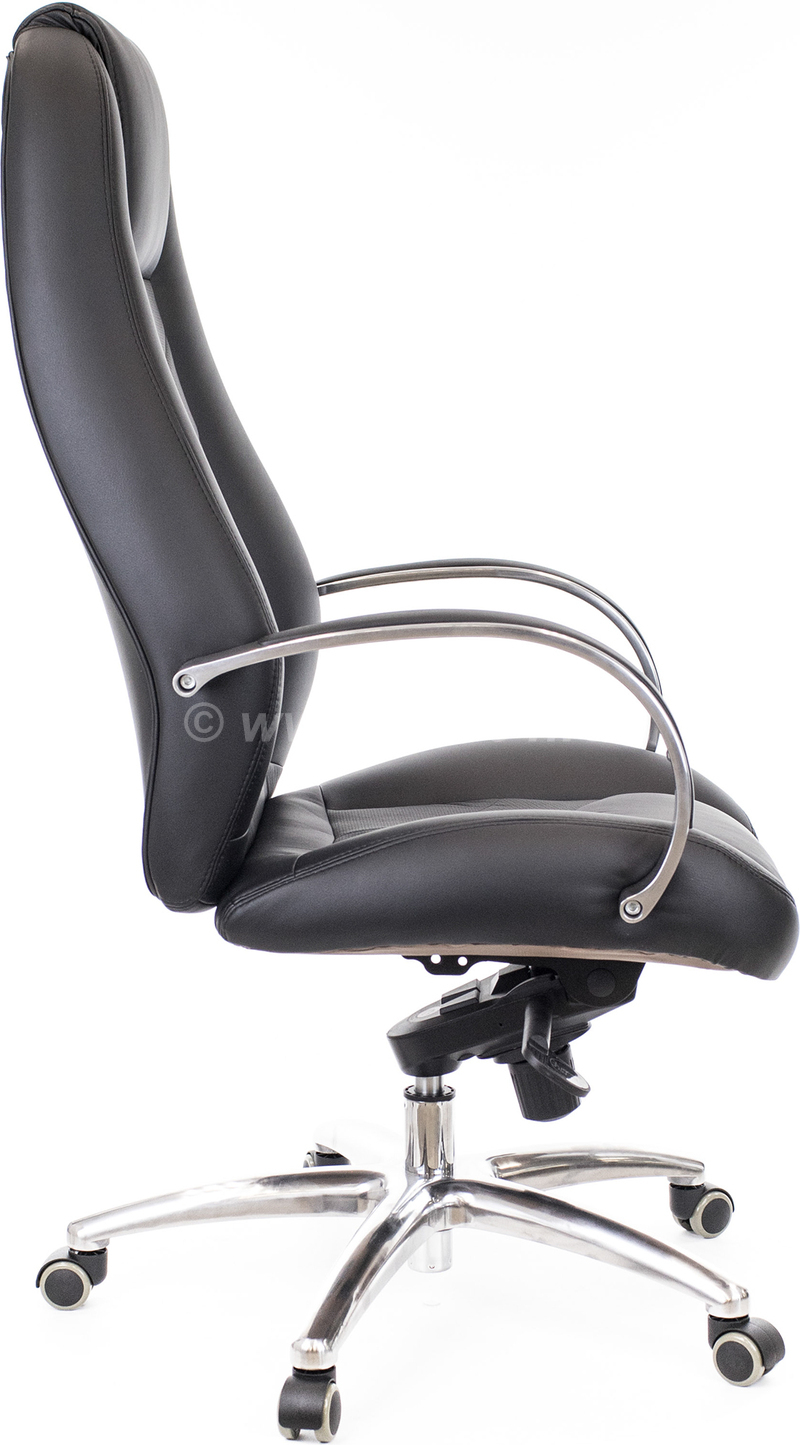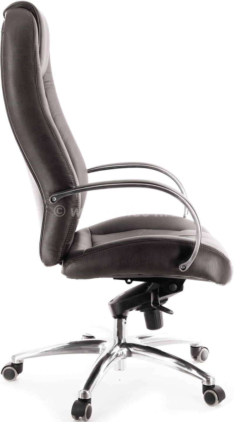 Элитный дизайн: Благородная натуральная кожа черного цвета дополняется элементами из полированного алюминия. Это кресло будет истинным украшением вашего рабочего пространства.