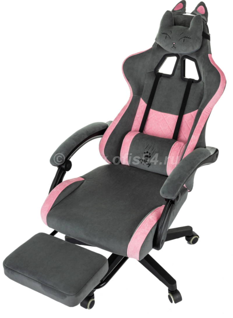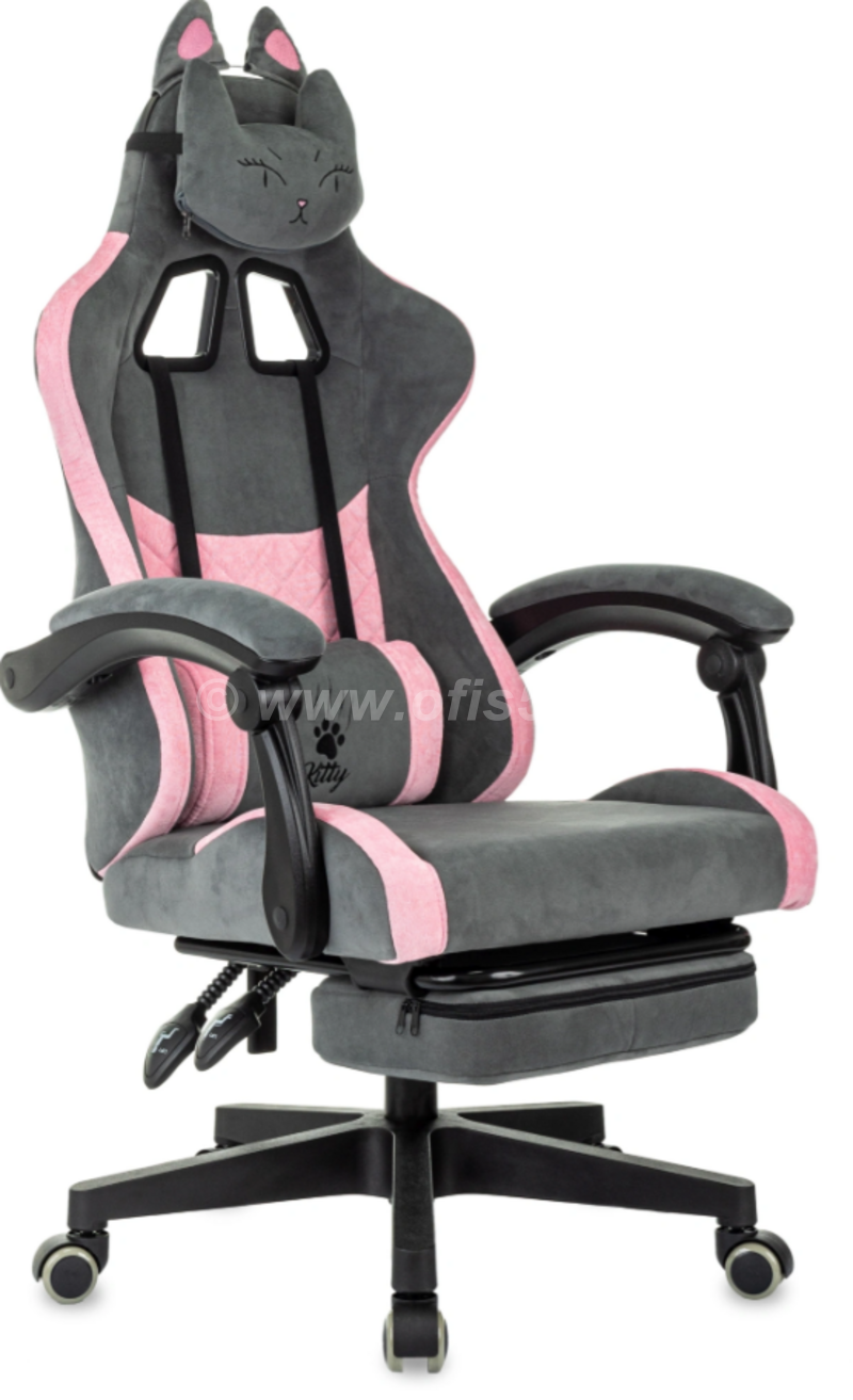 Кресло игровое Knight Kitty/F Fabric серый/розовый крестовина пластик, подставка для ног