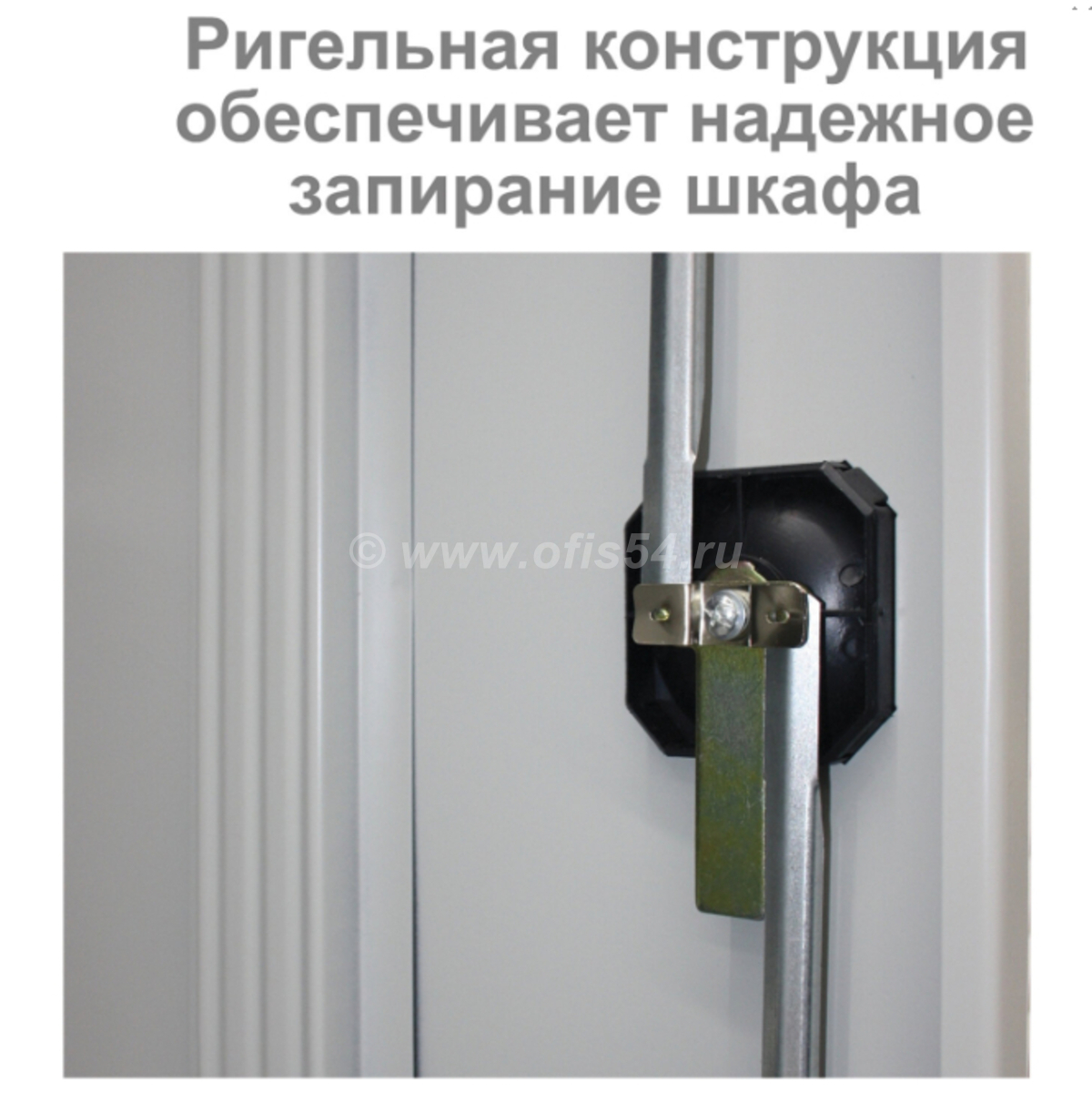 Оригинальная конструкция ригелей из нержавеющей стали и пластиковые втулки обеспечивают бесшумный ход дверей и надежное запирание шкафа.