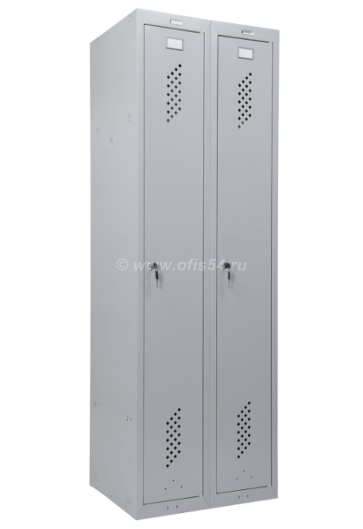 Шкаф имеет 2 раздельные секции и предназначен для двух пользователей. На дверях установлены ключевые замки (2000 комбинаций). На каждую дверь в комплекте 2 ключа.