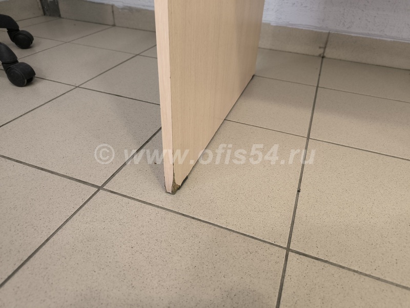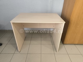 Стол письменный, рабочий на металлическом каркасе, имеет регулировку от неровностей пола, металлический кабель-канал для укладки проводов под столом, отверстие для проводов.